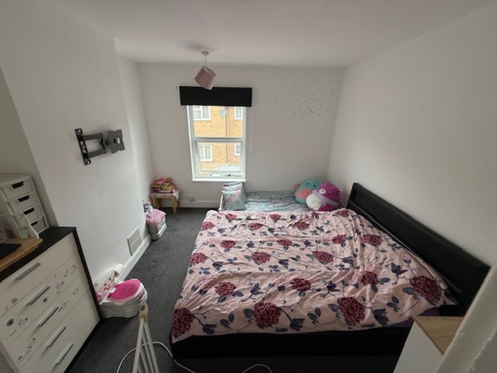 BEDROOM ONE 7' 3" x 10' 7" (2.21m x 3.24m) Grey fleck carpet fitted with double glazed window and white wall radiator