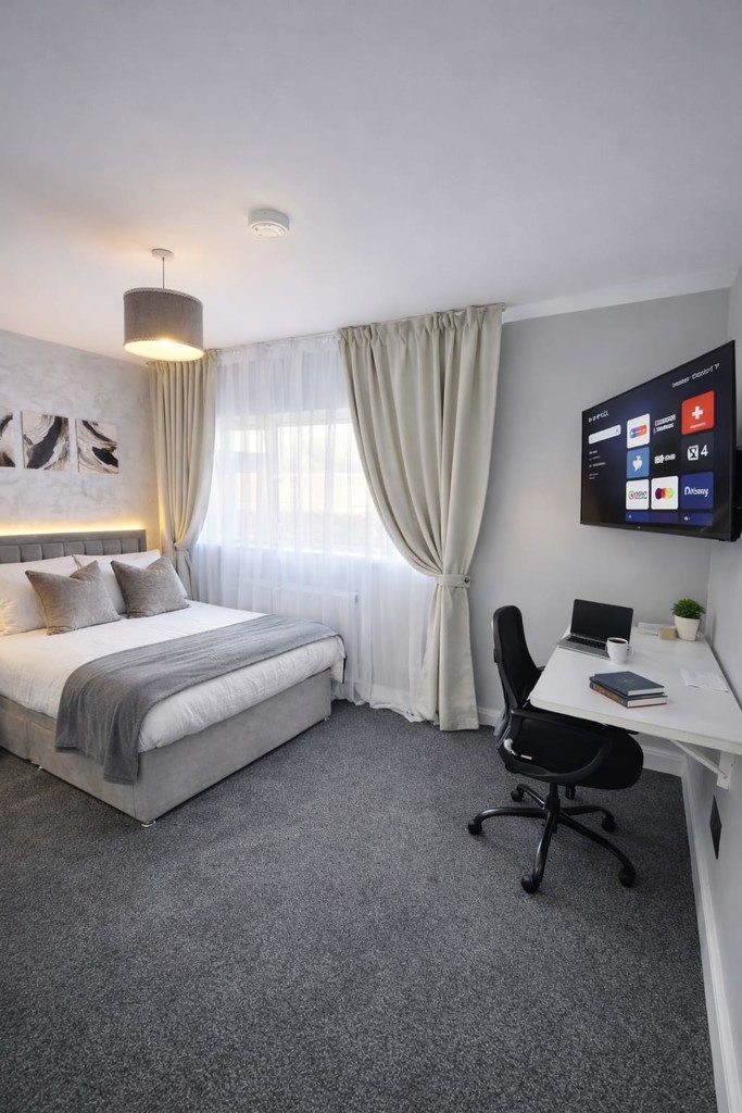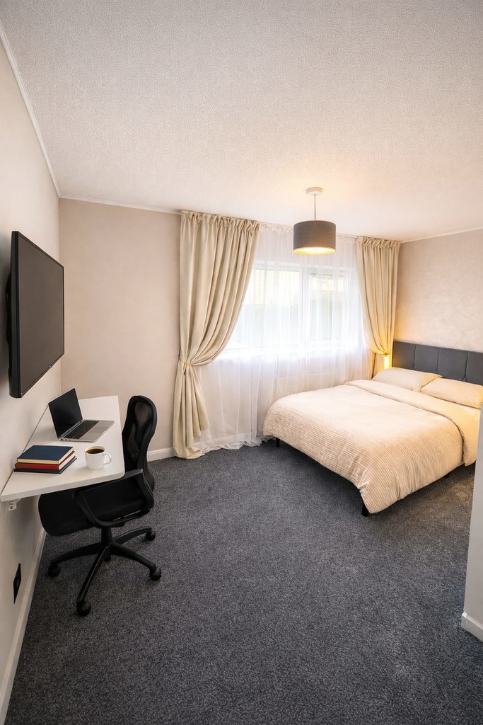 A fully furnished double bedroom with an ensuite within a newly refurbished property in the heart of Leiston. Off road parking available. All bills and cleaning included. 4 rooms Available.