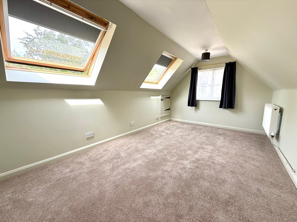 BEDROOM 15' 11" x 9' 8" (4.86m x 2.95m) two Velux windows, double glazed window to front aspect, wall radiator, fitted wardrobe cupboard with shelving and pole