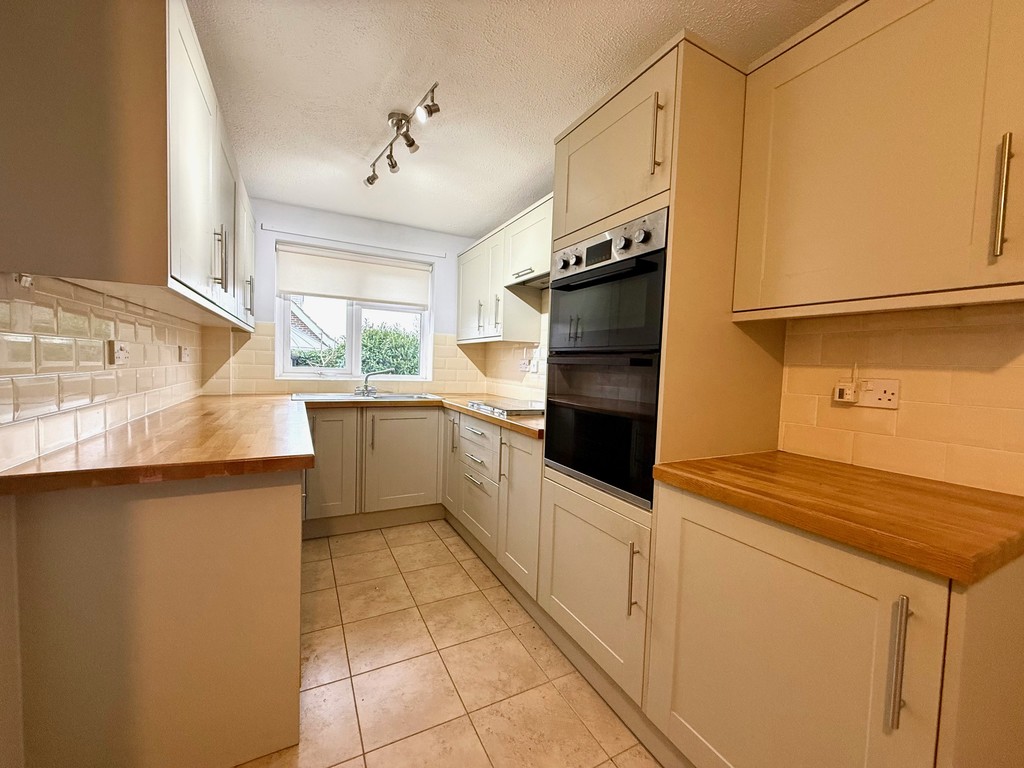 KITCHEN Variety of wall and base units, integrated double oven, ceramic hob, cooker hood, stainless steel sink and drainer, space for dishwasher, tiled flooring, double glazed window to rear aspect