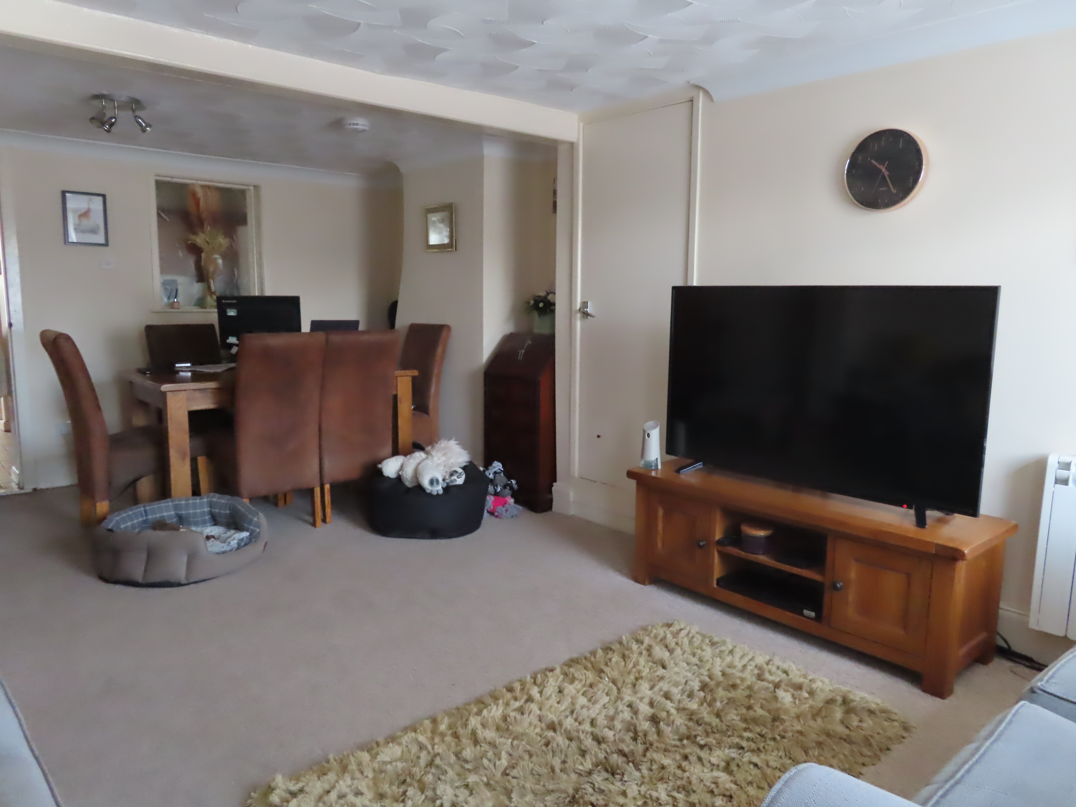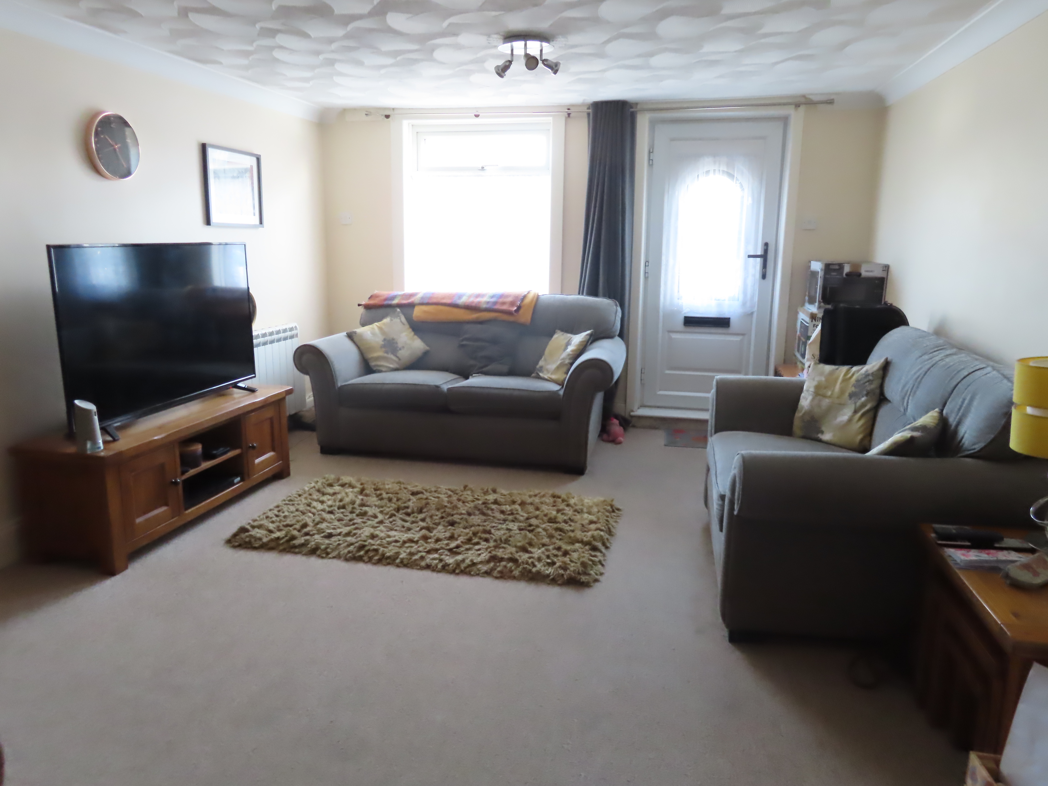 Lounge/diner 6.25m by 2.56m entry through double glazed door, two wall heaters, double glazed window to front aspect, door leading to kitchen