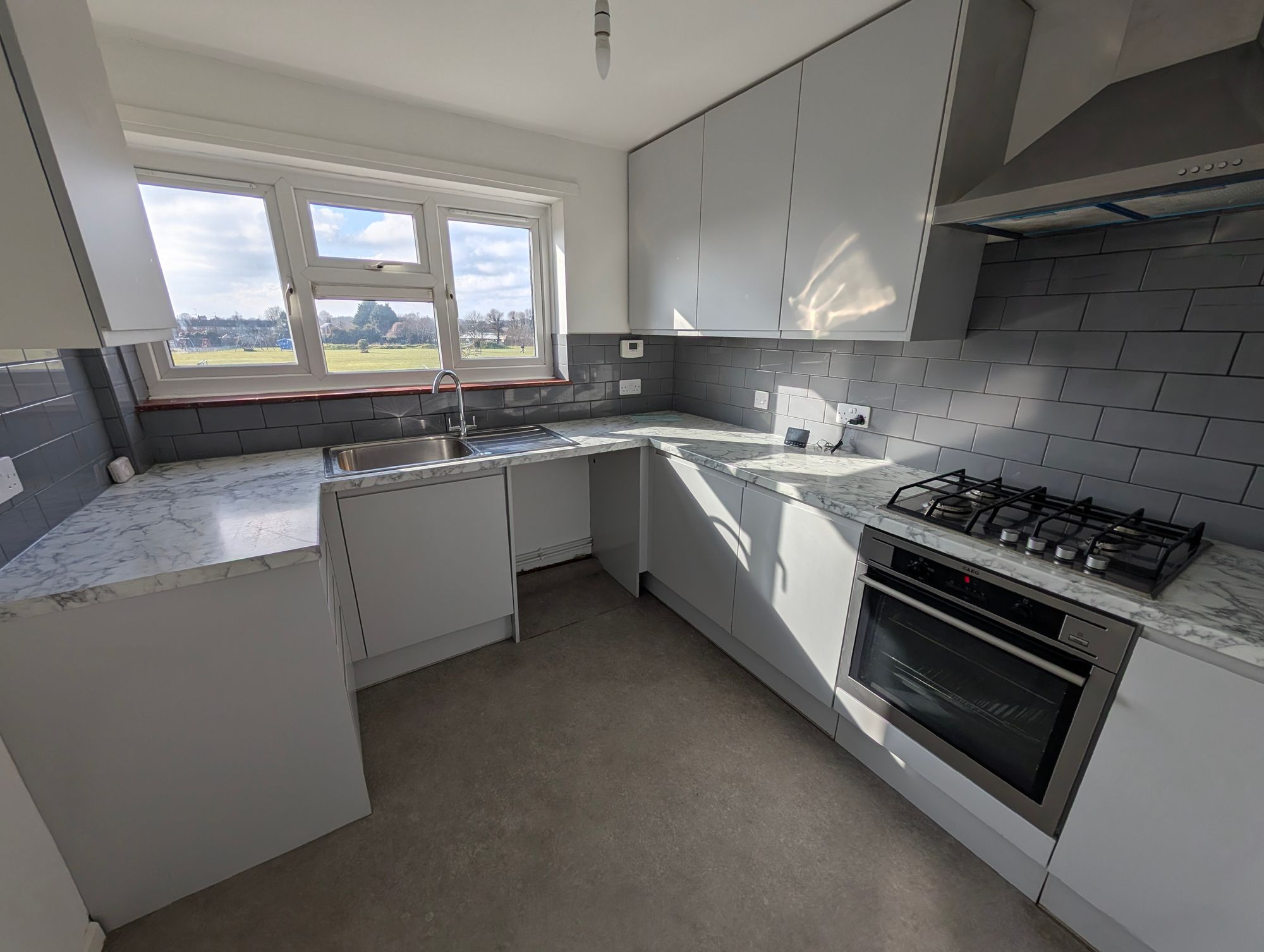 Dimensions: 8' 7" x 8' 4" (2.63m x 2.56m). New kitchen, gas hob, electric oven and extractor fan. Space for washing machine and fridge freezer.