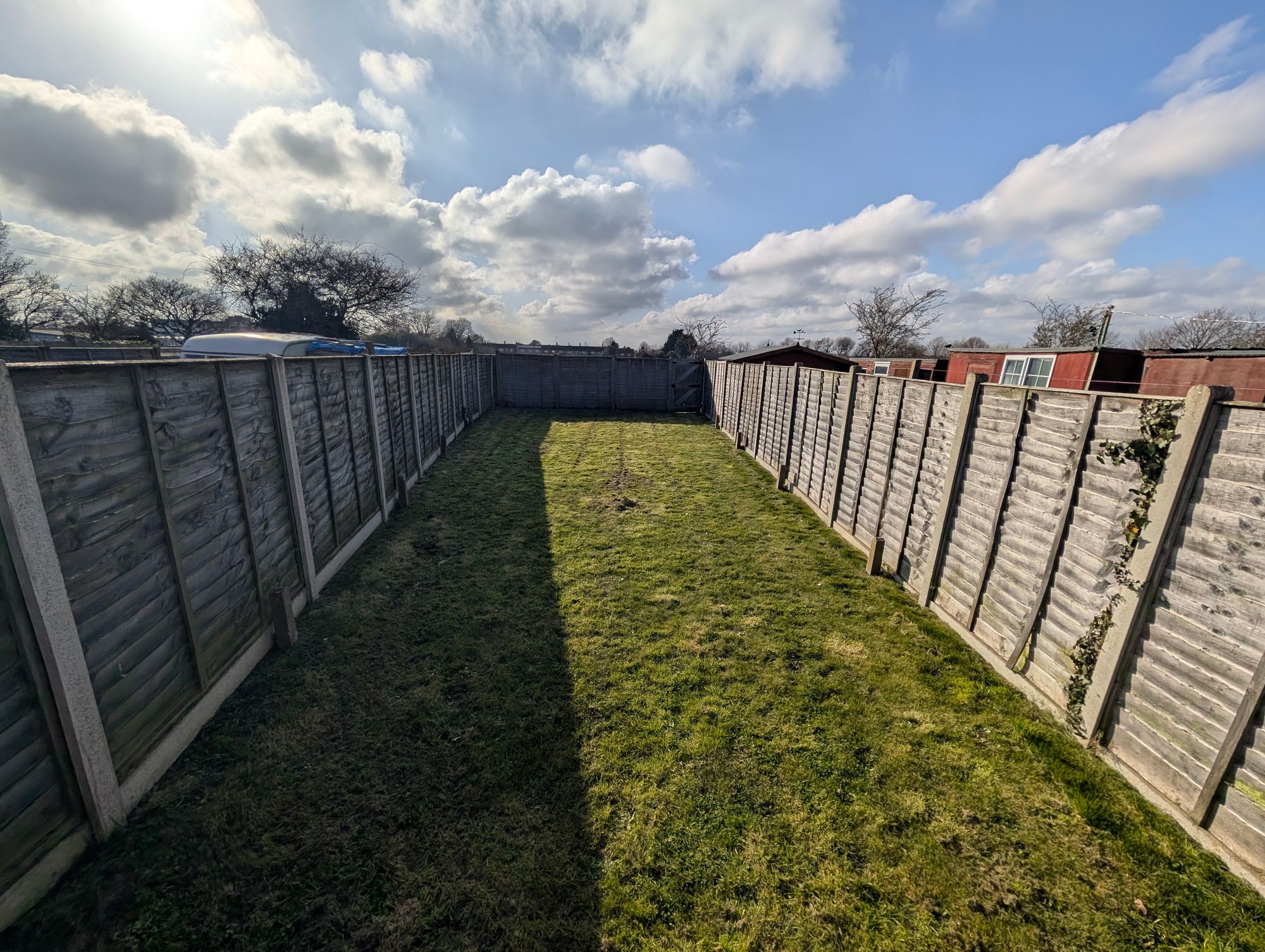 The rear garden is laid to lawn and has a small outside storage building. To the rear of the garden is an off road parking space.