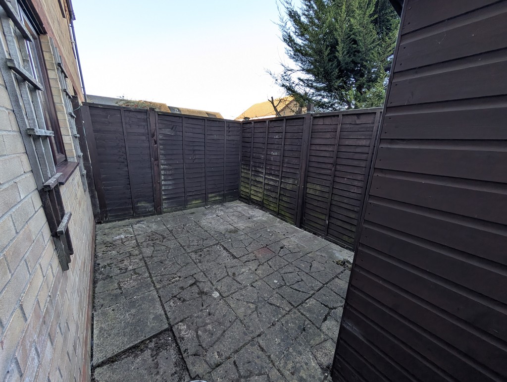 Hallway with storage cupboard, Living room with bay window, Kitchen, Bathroom with shower over bath, Bedroom, Small Garden.