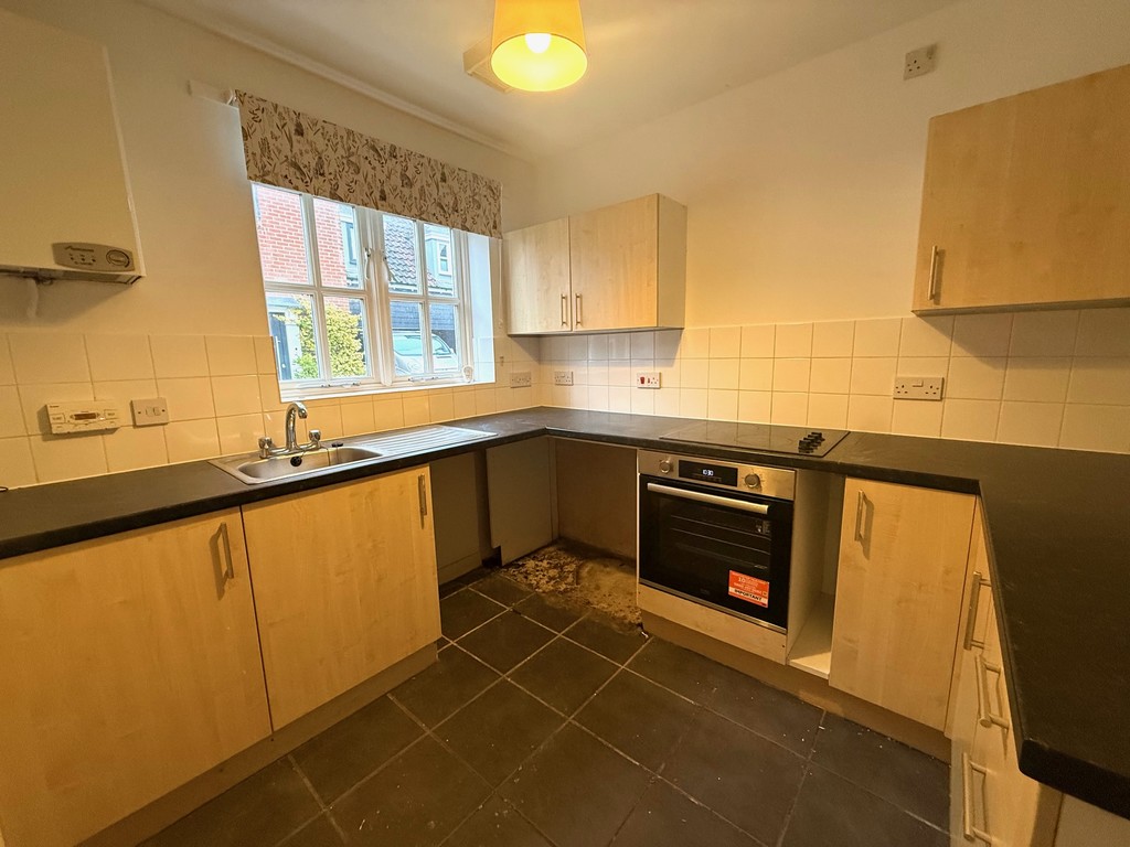 KITCHEN a variety of wall and base units, electric oven, hob and stainless steel sink. Space for appliances, double glazed window to front aspect