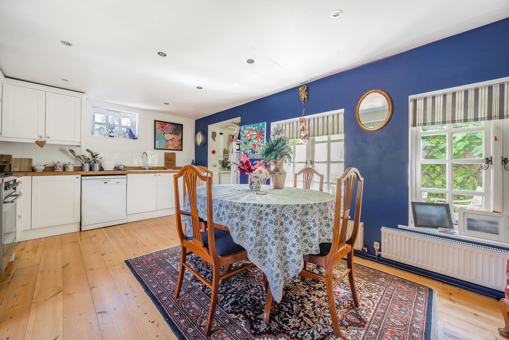 The dining room enjoys a wood burning stove and the double aspect sitting room has wonderful views of the surrounding gardens.