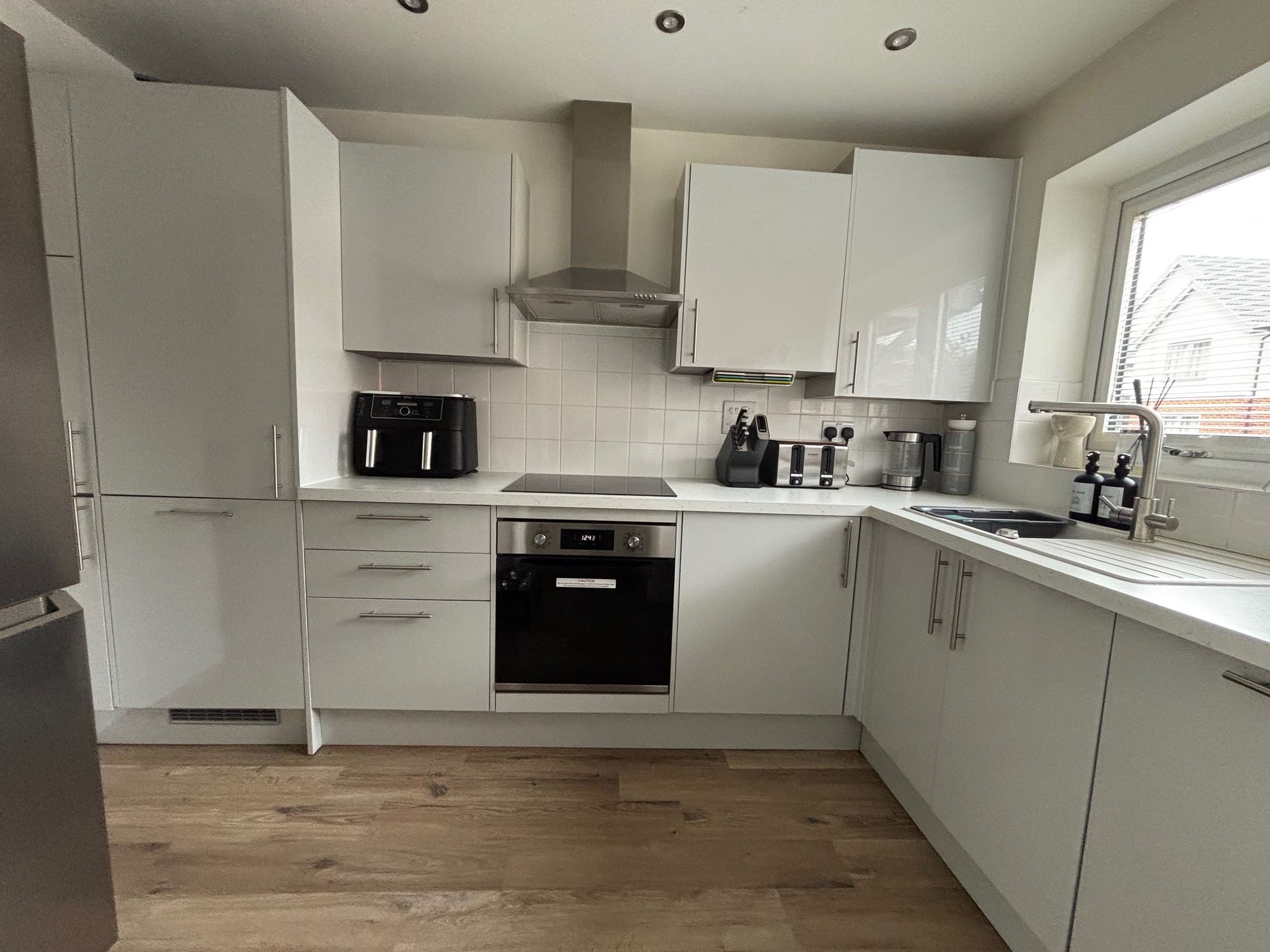 Double glazed window, wall and base units, integrated appliances, Kardean flooring, sink and drainer, radiator.