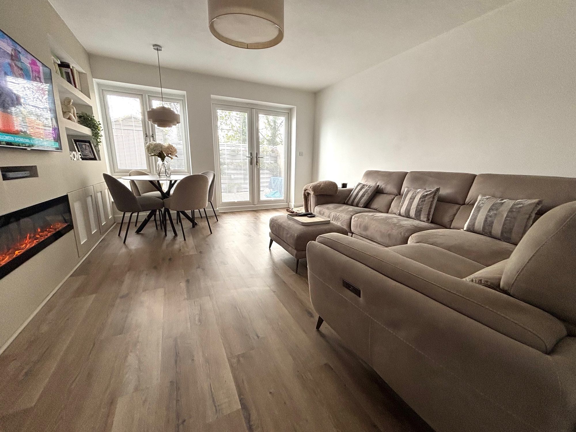 Living room / dining room 15'3" x 14'0" (4.65 x 4.29)Double glazed window to rear, double glazed doors to rear, Kardean flooring, built in media system with electric fire, radiator