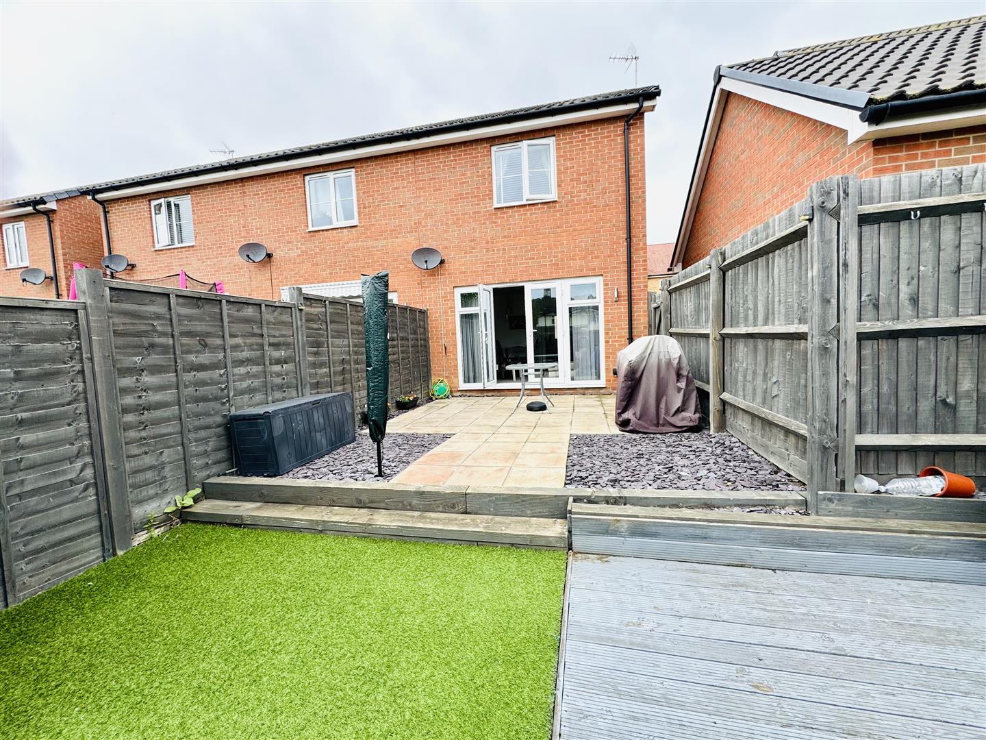 The southerly facing rear garden has a patio, artificial lawn, deacking area and enclosed by fencing.