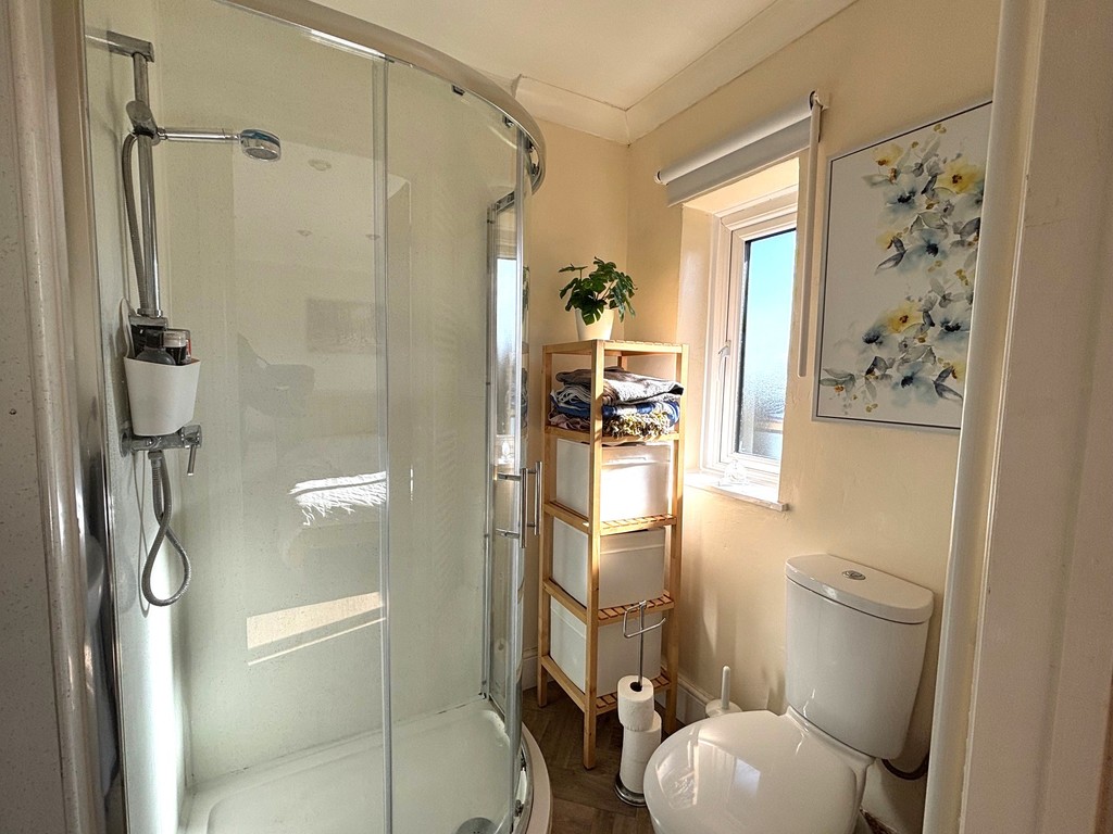Fitted with a shower enclosure, low-level WC and hand basin, complemented by a double glazed window.