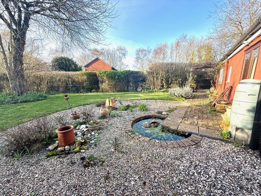 To the front of the property there is a block paved driveway leading to the GARAGE. There is side access to the rear garden. There is a gate to a pathway leading to the front door and a further side lawn area with gate leading to the rear garden. To the rear of the property there is a lawn area, mature hedging, shed, brick built potting shed and pond. Air source heat pump.