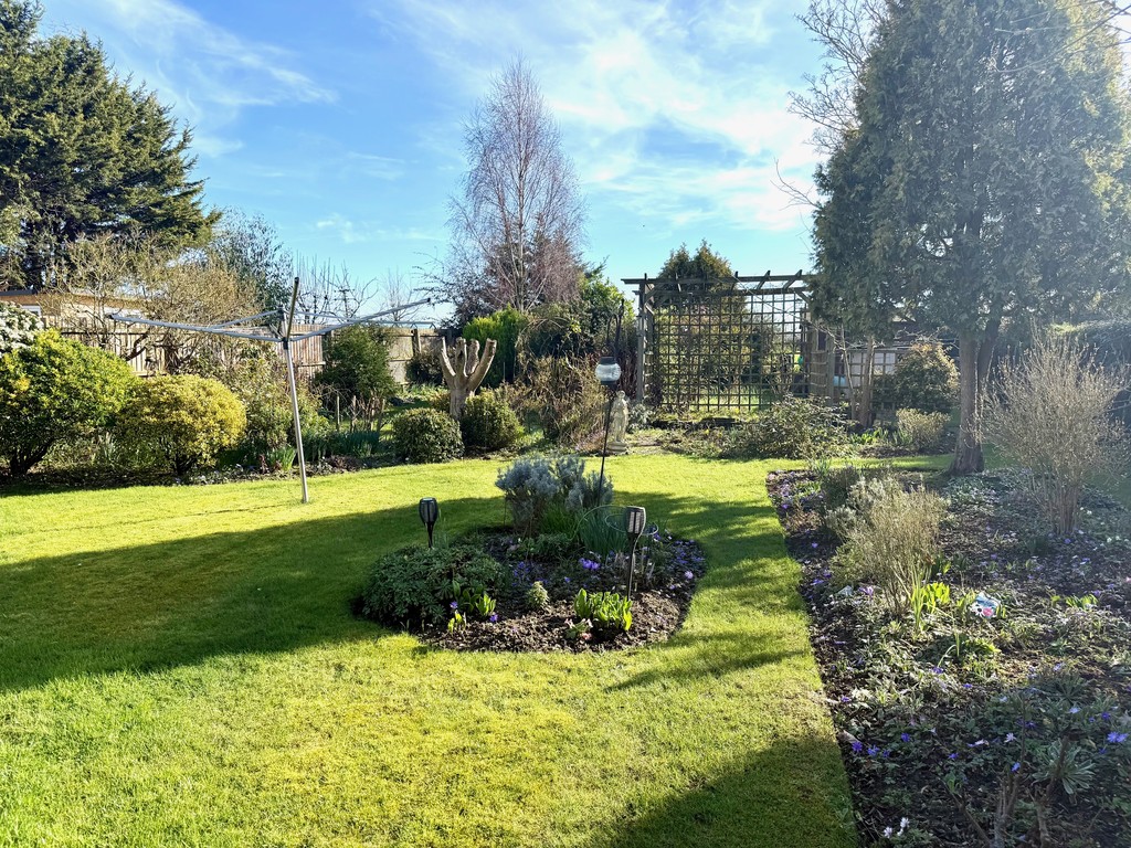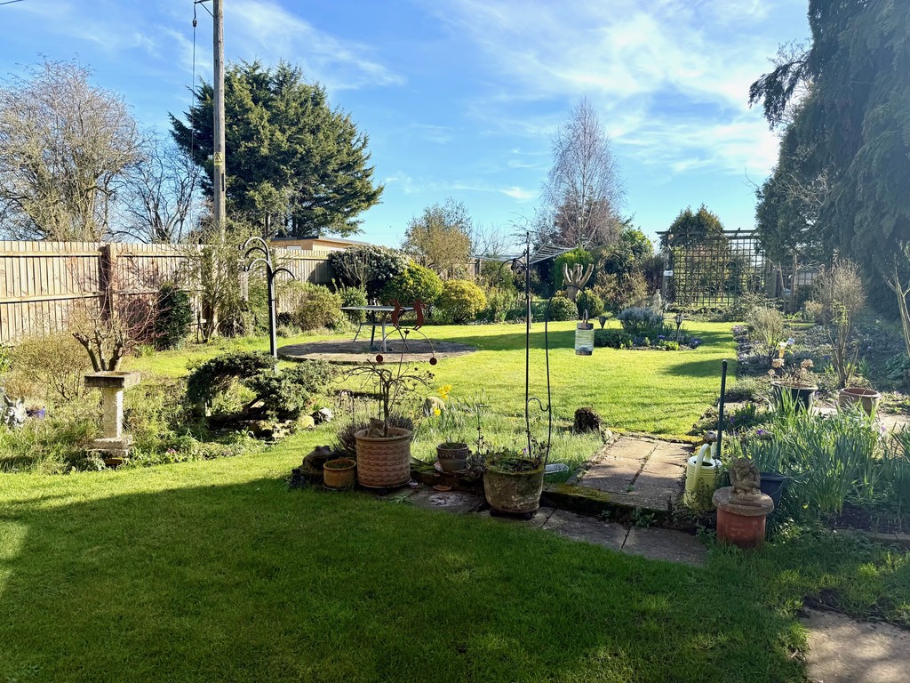 OUTSIDE to the front is mainly laid to lawn, driveway and garage, gate leading to the rear garden. To the rear is a large garden. Mature garden with a variety of lawn and slower beds, patio and shed.