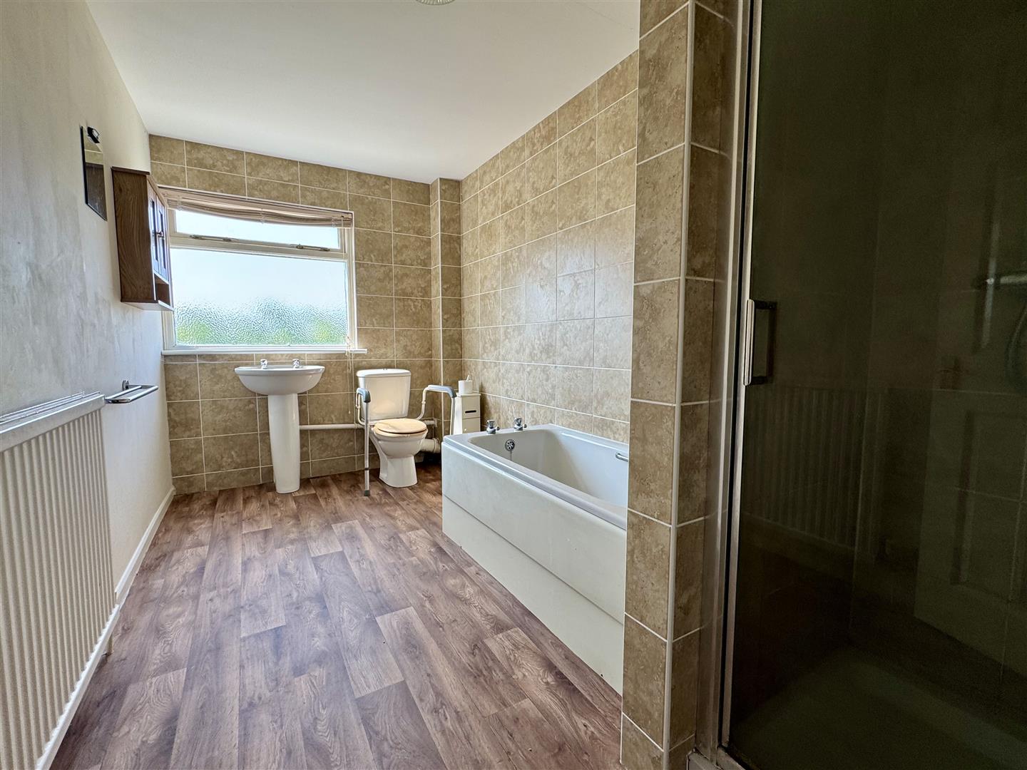 Double glazed window to front, shower cubicle, bath, W.C, hand wash basin and a radiator.