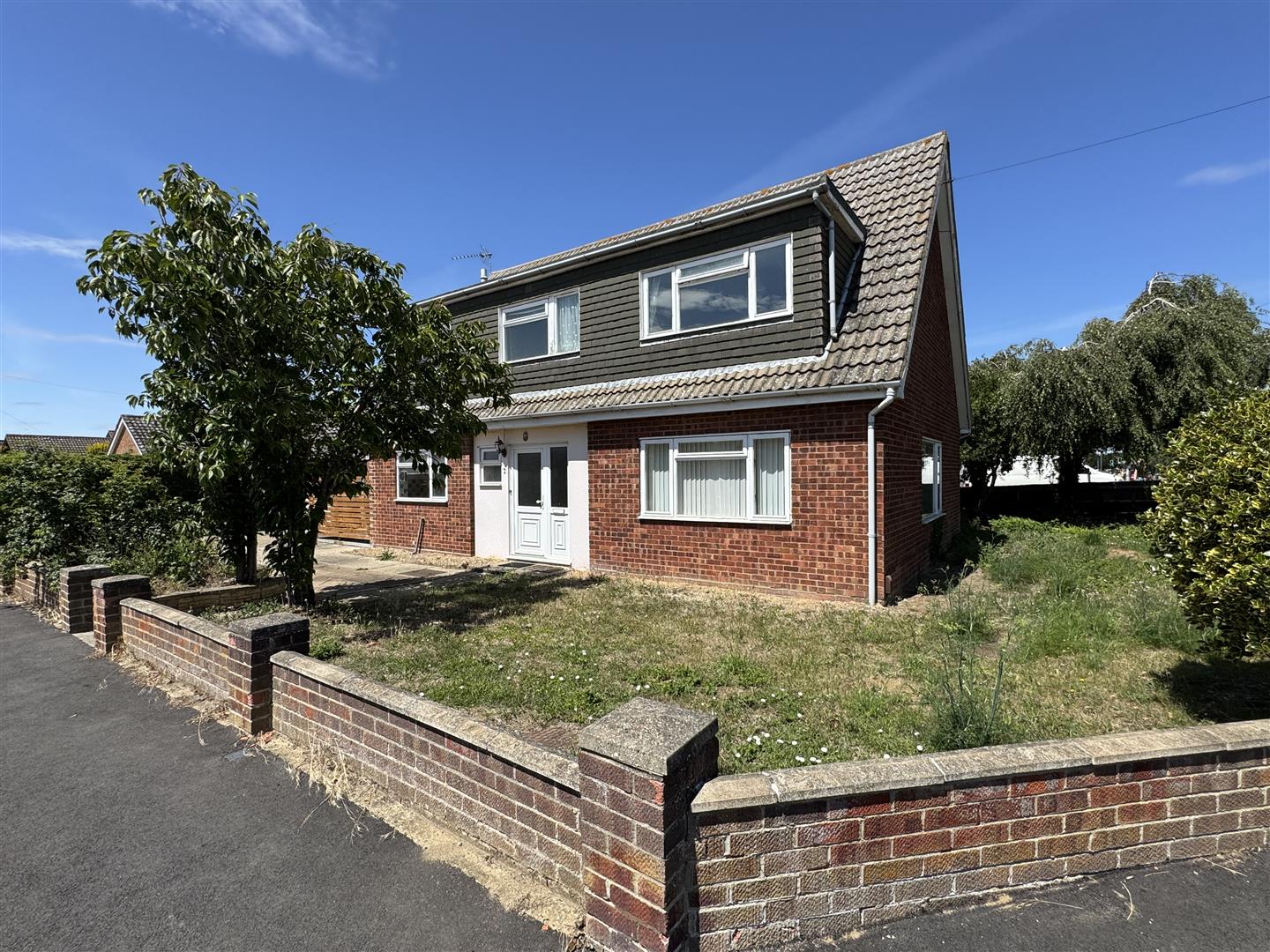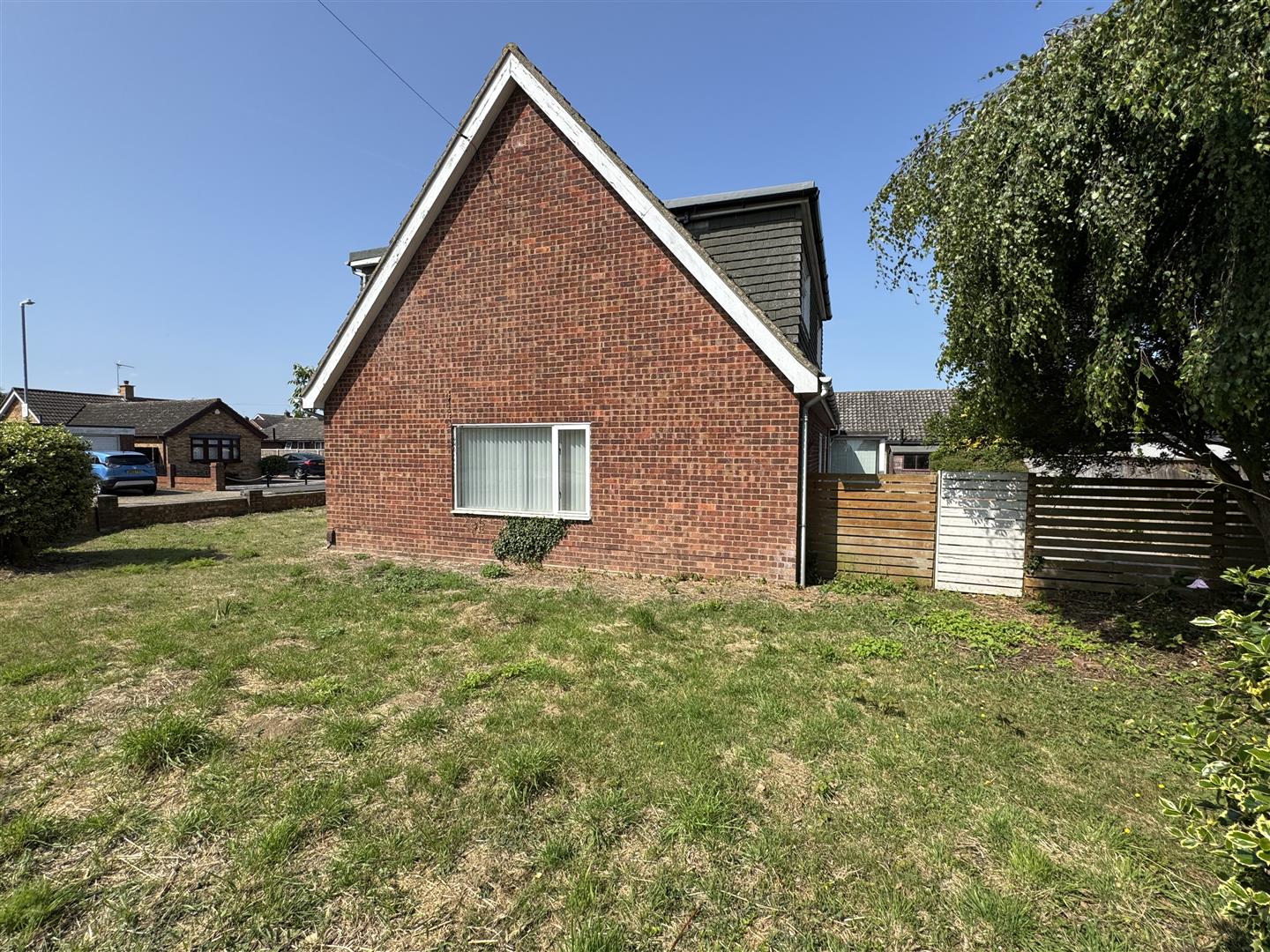 The property occupies a corner plot with a driveway providing ample off road parking that leads to a garage. There is a lawn and retaining brick wall and access to the rear via a gate.