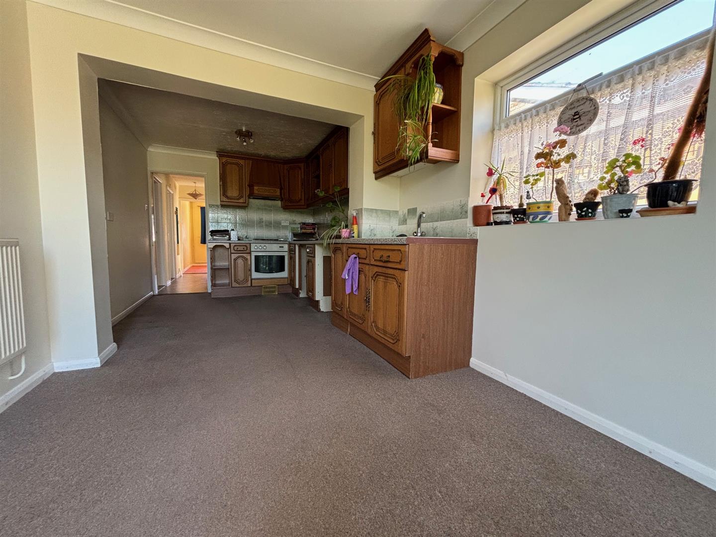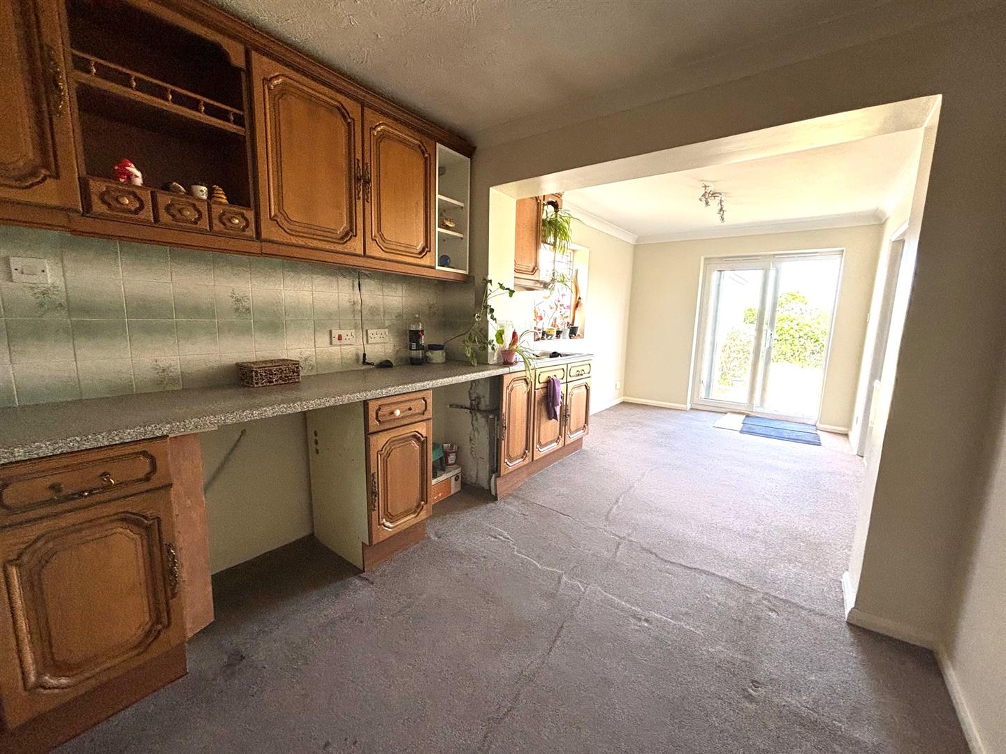 Double glazed doors to rear garden, radiator, wall and base units, integrated oven, hob and extractor, space for appliances.