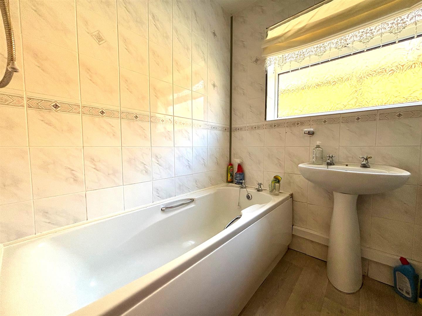 Double glazed window to side, paneled bath, low level w/c and hand wash basin.