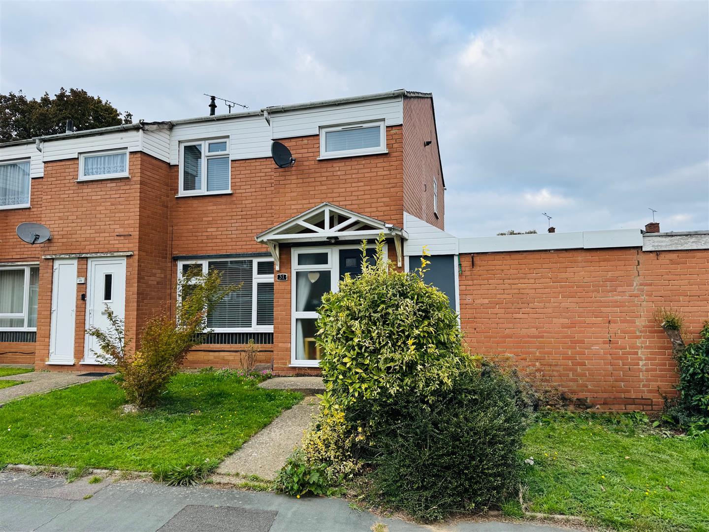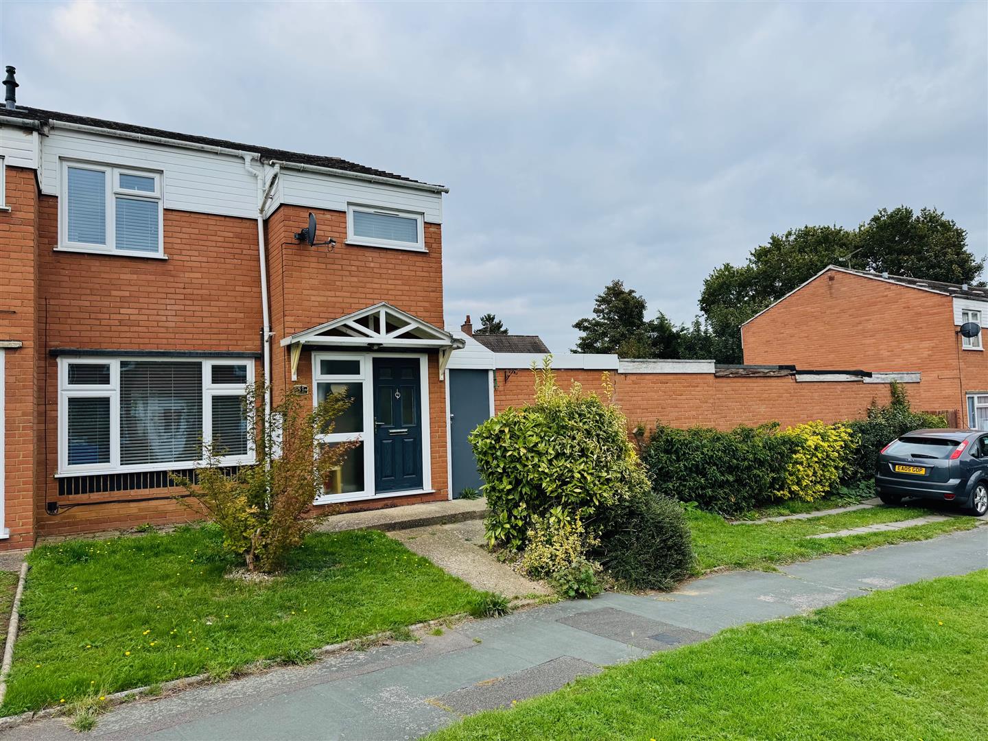 The property is situated on a no through road an enjoys looking onto a green. There is an open plan garden and strip of land providing off road parking for at least 2 cars. There is vehicle access leading to a garage ( the garage is in a block and benefits from being next to the house with a door from the garage to your side passage. Power is connected)