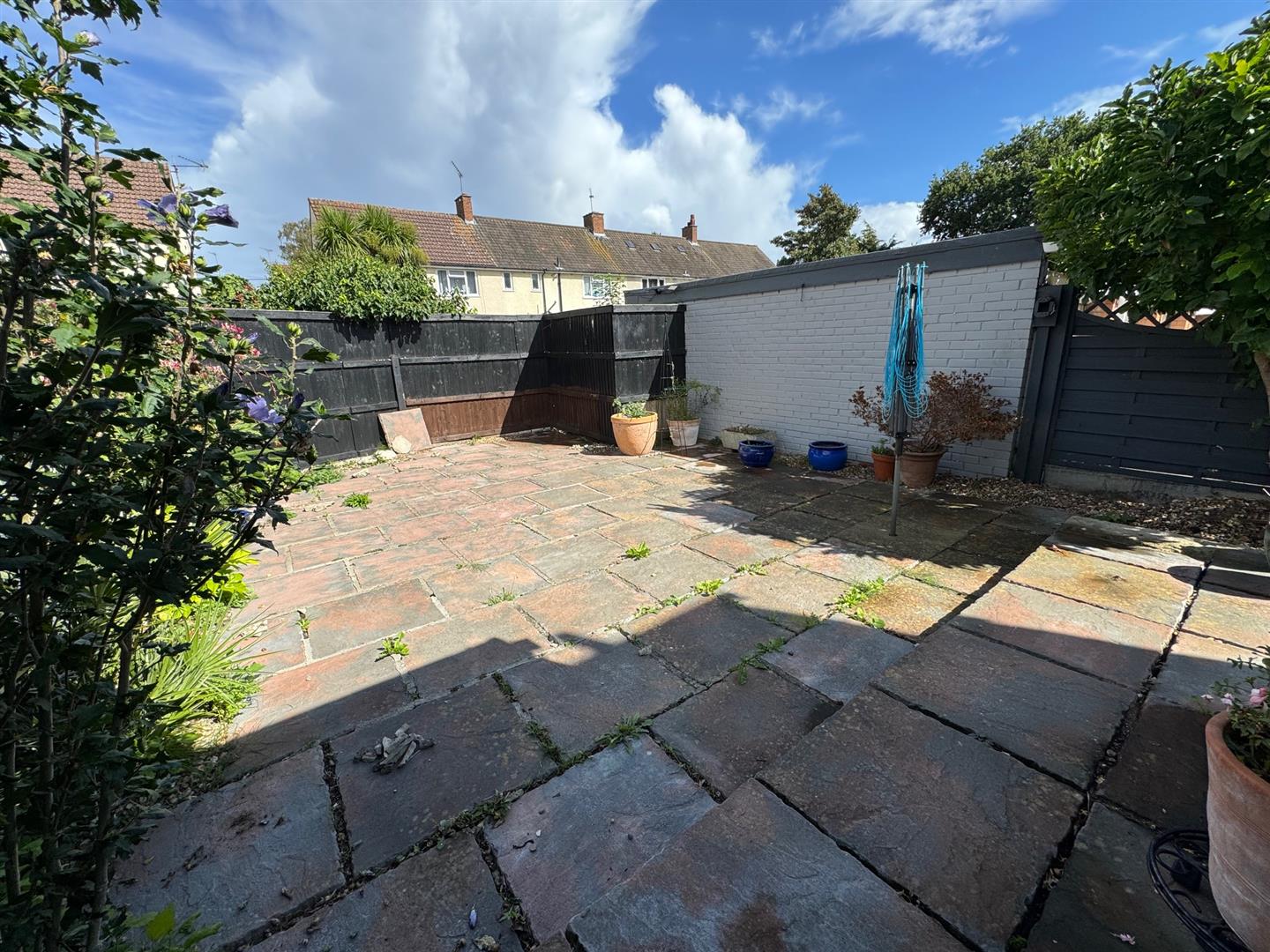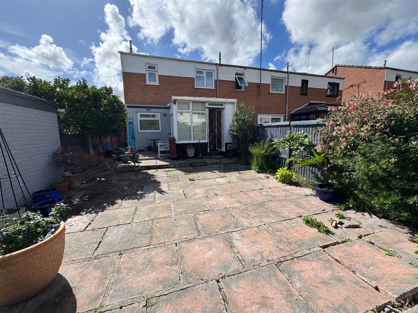 The rear garden has mainly patio with access to garage to the side of the property, a side gate gives access to the front. There is an outside tap and enclosed by panel fencing.