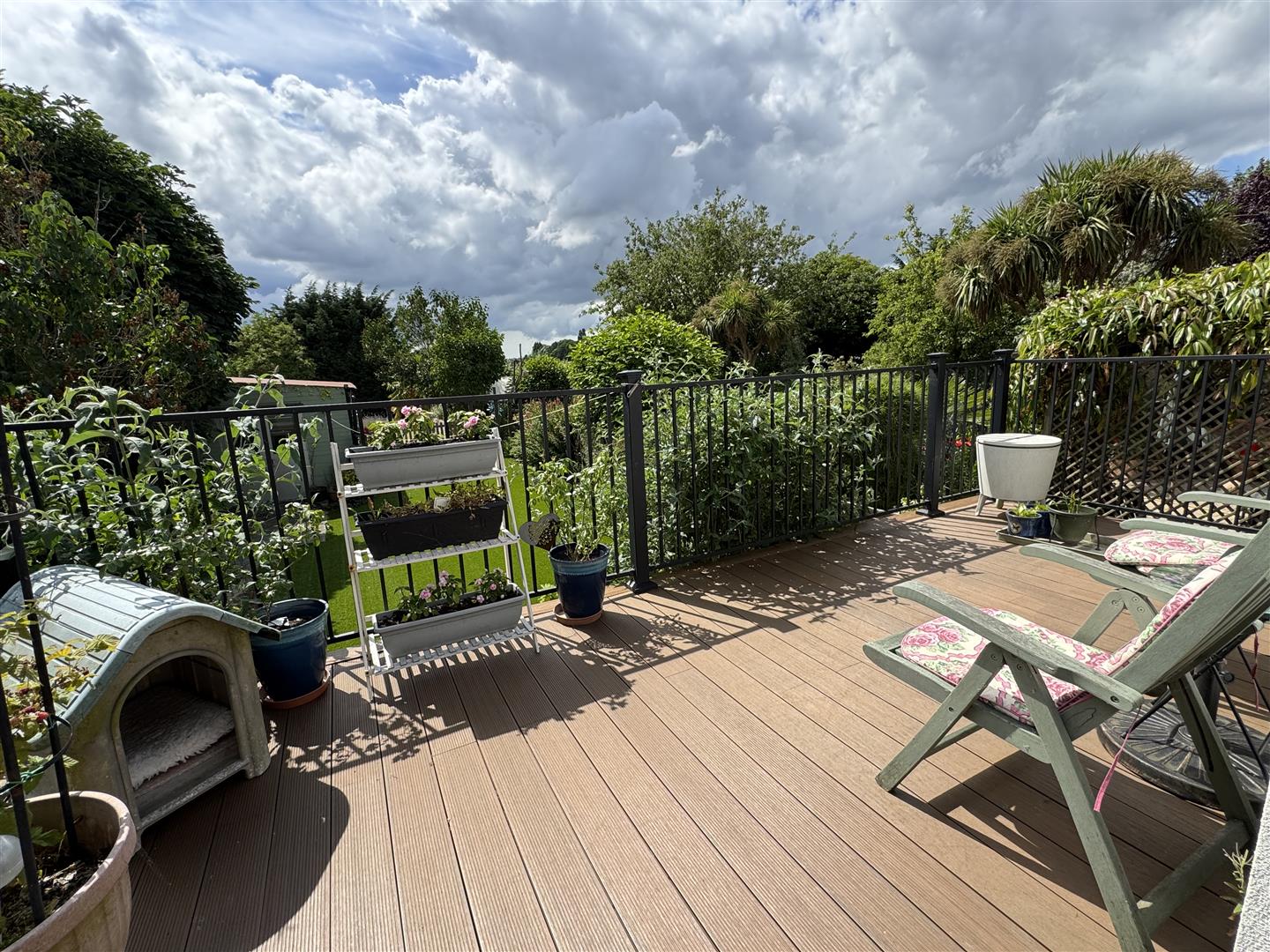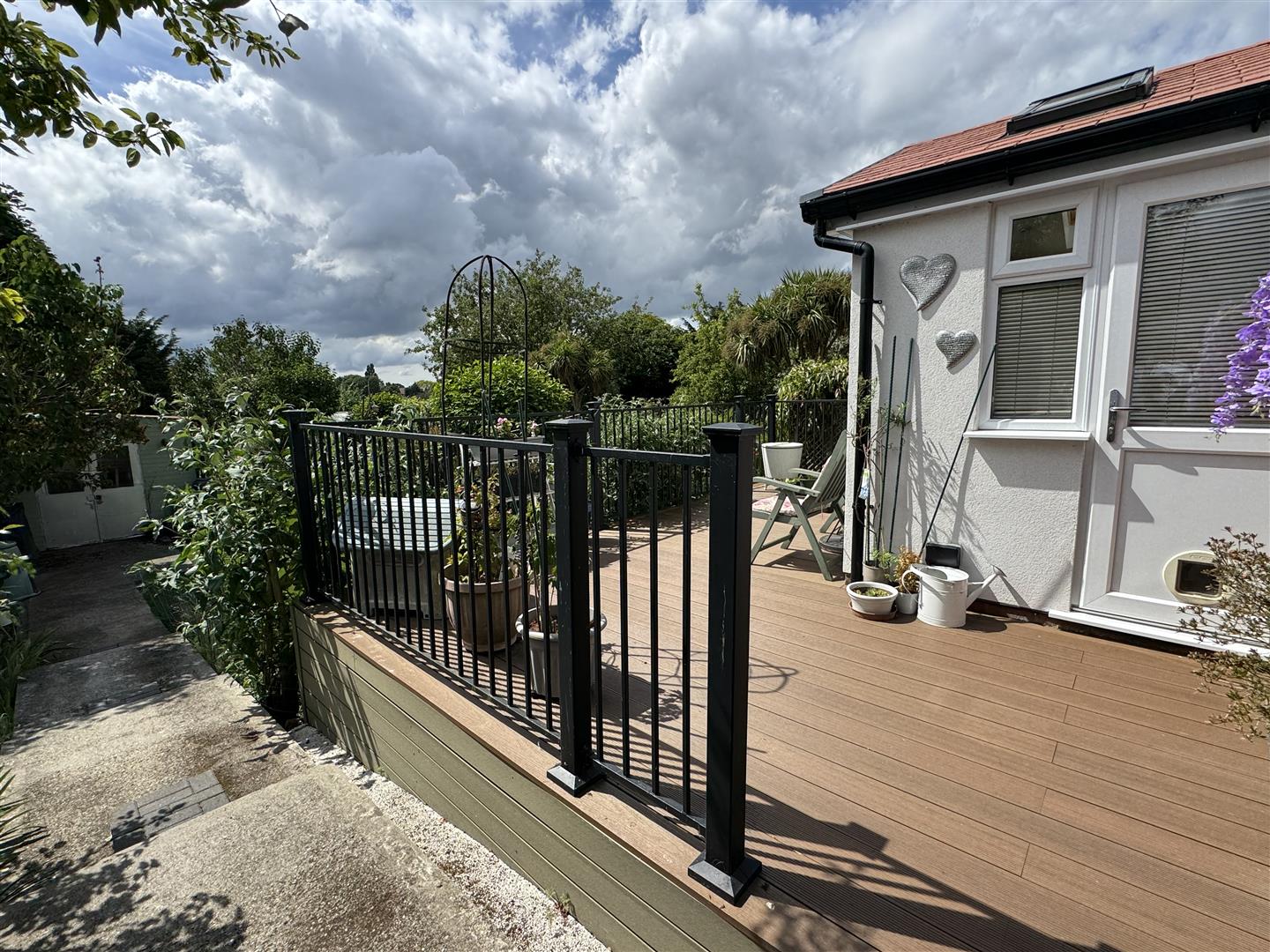 The west facing rear garden is over 100ft. A raised decking area is on the back of the house enjoying views of the garden, artificial lawn and grass lawn, raised flower beds and a range of mature shrubs. There is a 20ft 5" x 10ft 4" shed with power and lighting. There are outside power sockets and a hot & cold tap.