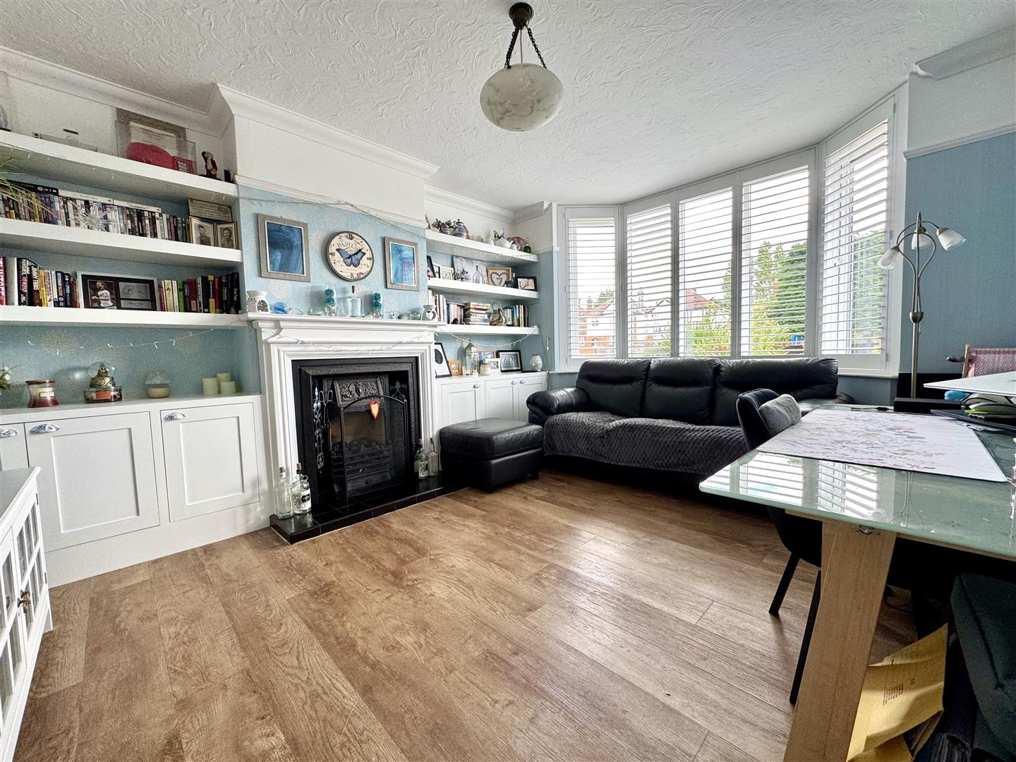 Double glazed bay window to front with fitted shutters, fitted shelving and cupboards, picture rails and a radiator.