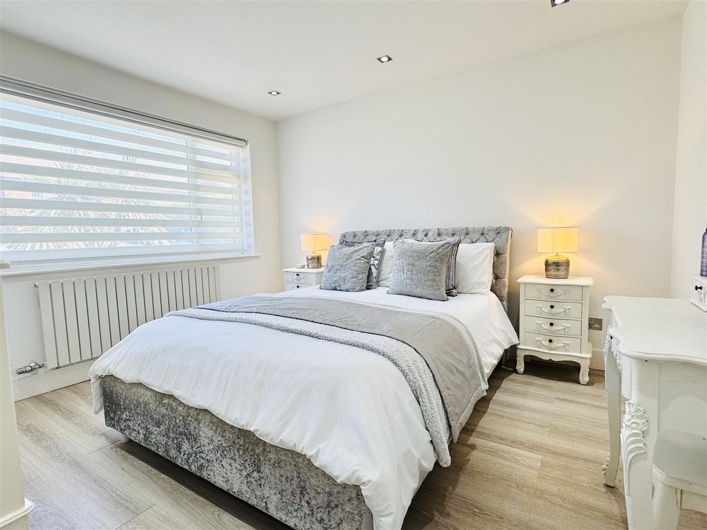 This beautiful kitchen comprises of a central island and breakfast bar, wall and base units, worktops, sink and drainer, integrated fridge, freezer, oven & microwave, induction hob, extractor hood, dishwasher, washing machine and wine cooler. Double glazed window and door to rear garden. Luxury vinyl tile wood effect flooring flows through to the hallway.