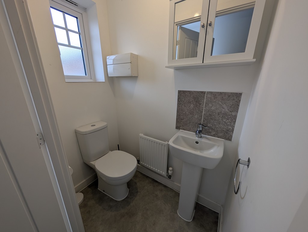 Fitted with a two-piece suite comprising a low-level WC and hand wash basin, with radiator and double-glazed window to the front aspect.