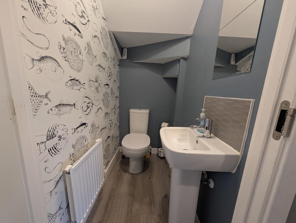 Fitted with a WC, wash hand basin, radiator, and extractor fan - a practical addition for family living.