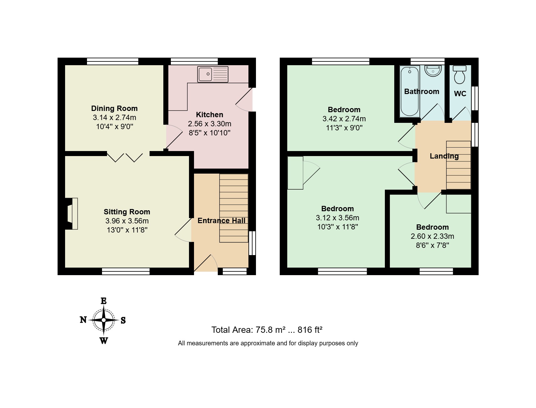On the first floor, the landing provides access to the loft via a hatch and includes a side window.