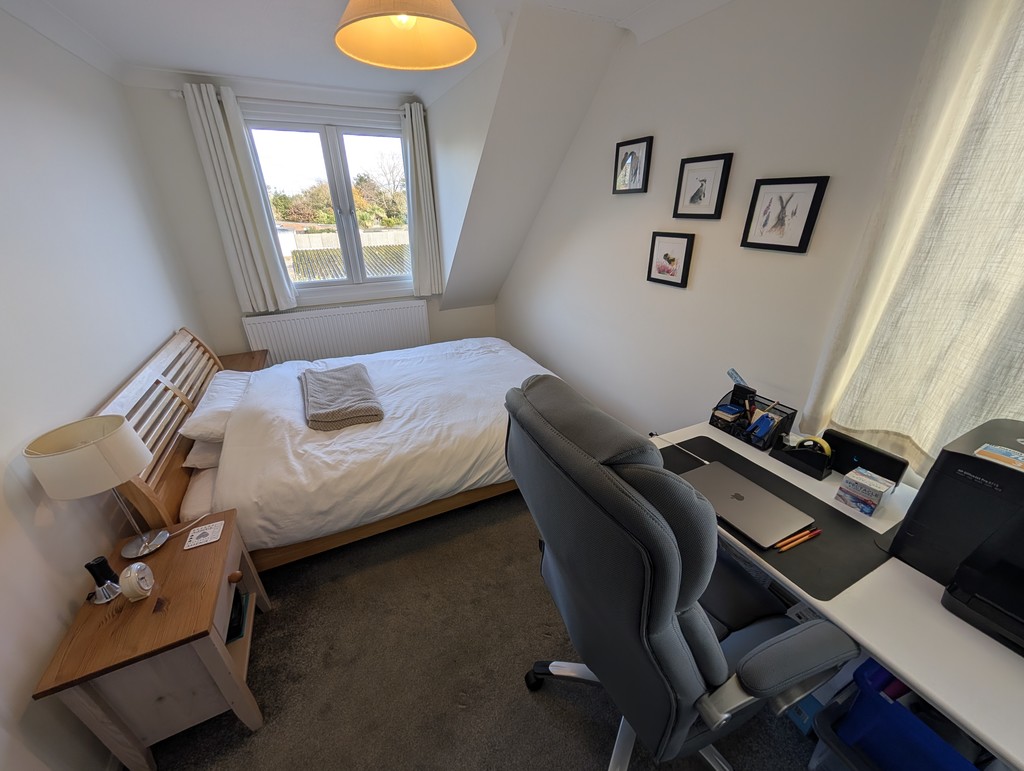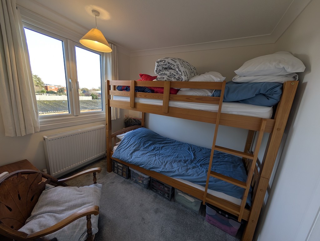 Upstairs, the landing has loft access via hatch and leads to three well-proportioned bedrooms. Bedroom one is a generous double with large windows to the front and a radiator. Bedroom two benefits from dual aspect windows to the side and rear, while bedroom three, also with a window to the rear, provides an ideal guest room, study, or child's bedroom.