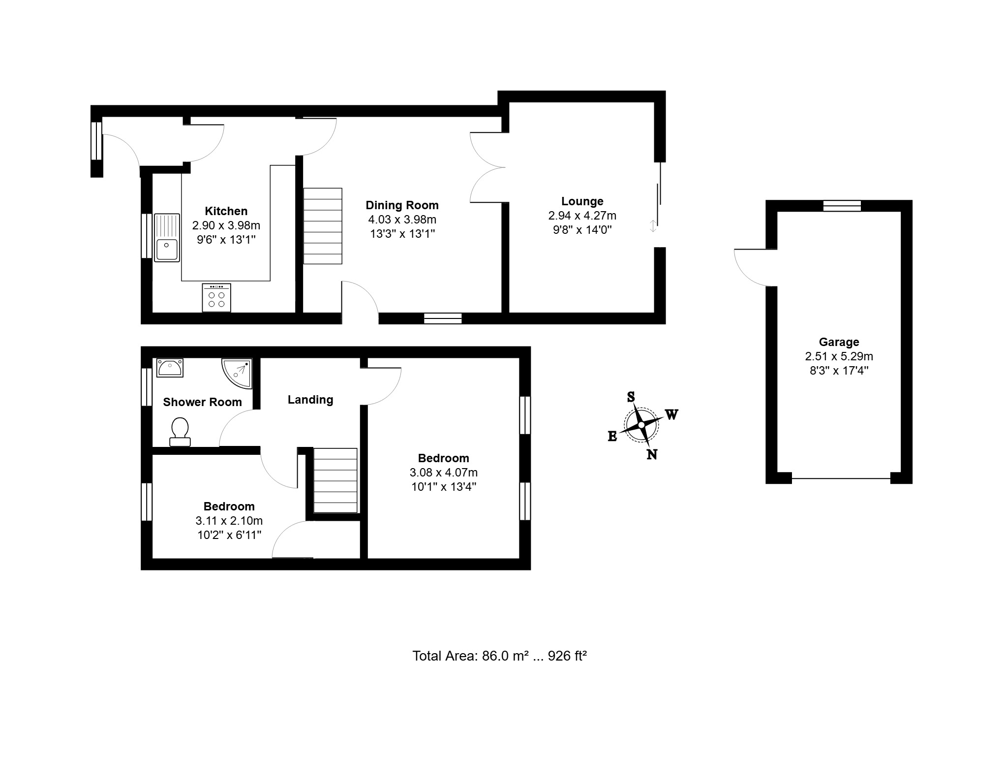 Stairs from the dining area rise to the first floor landing, with loft access via hatch.