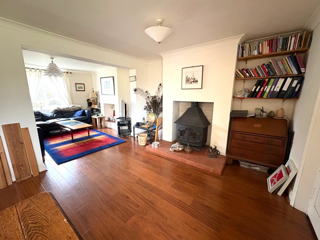 - Spacious sitting/dining room with wood burning stove