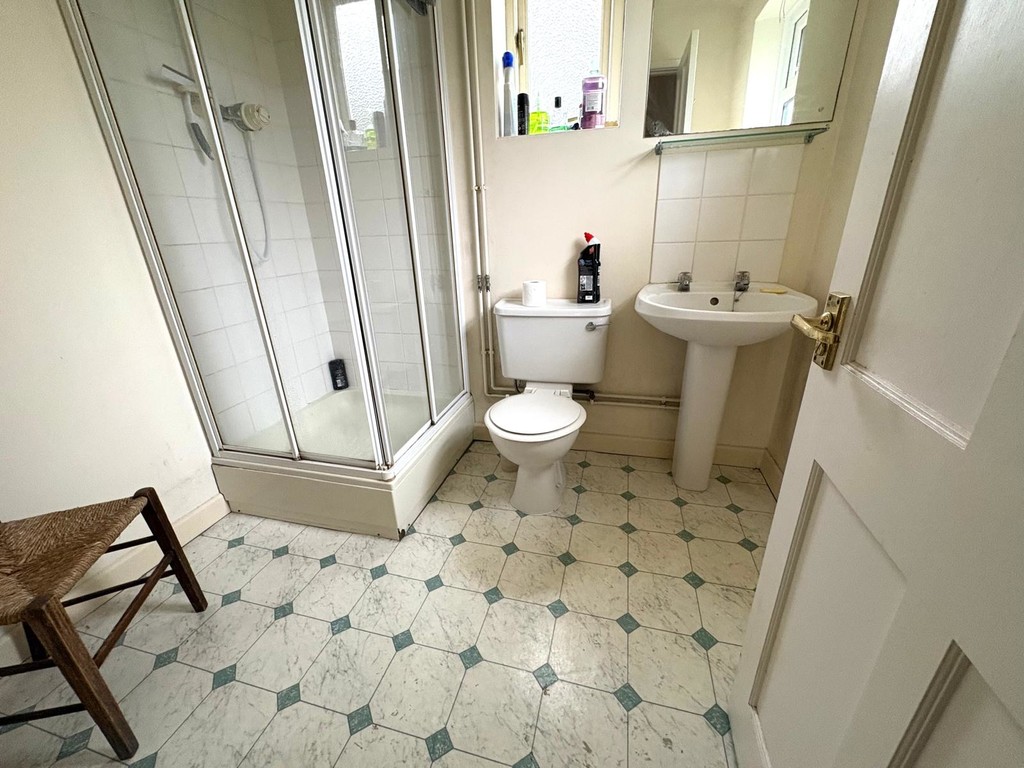 uPVC window to the east aspect and casement window to the north aspect. Suite comprising shower cubicle, low level WC and pedestal wash hand basin. Vinyl flooring, radiator and loft access.