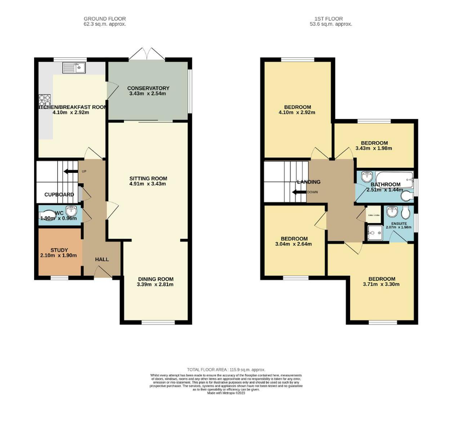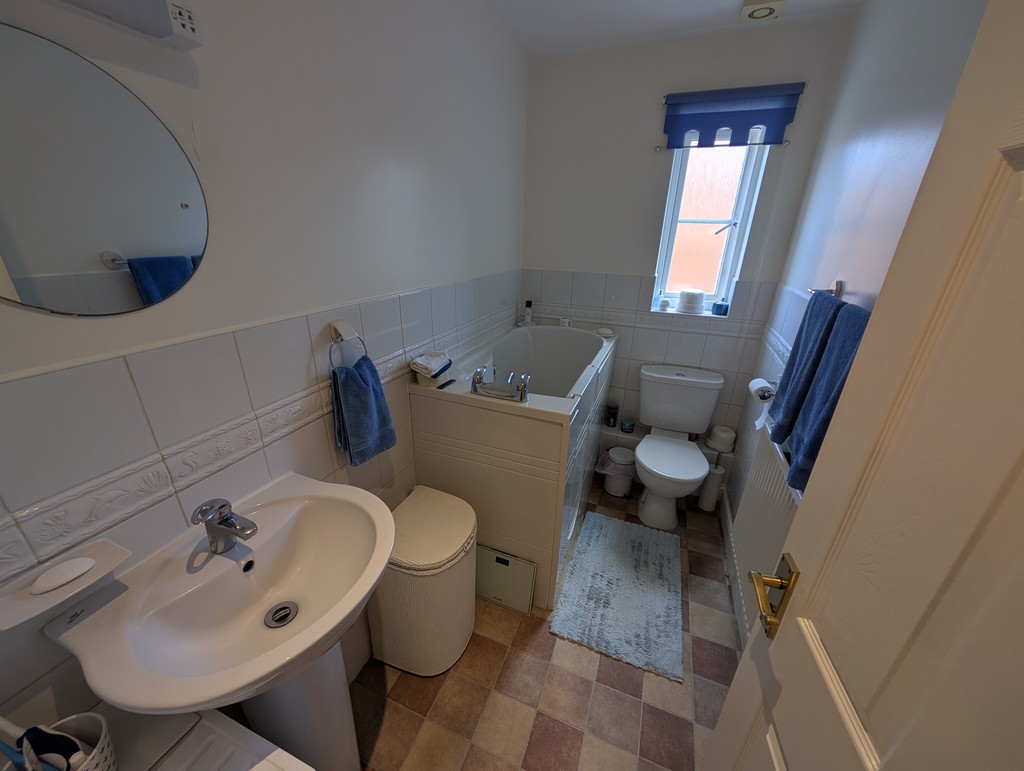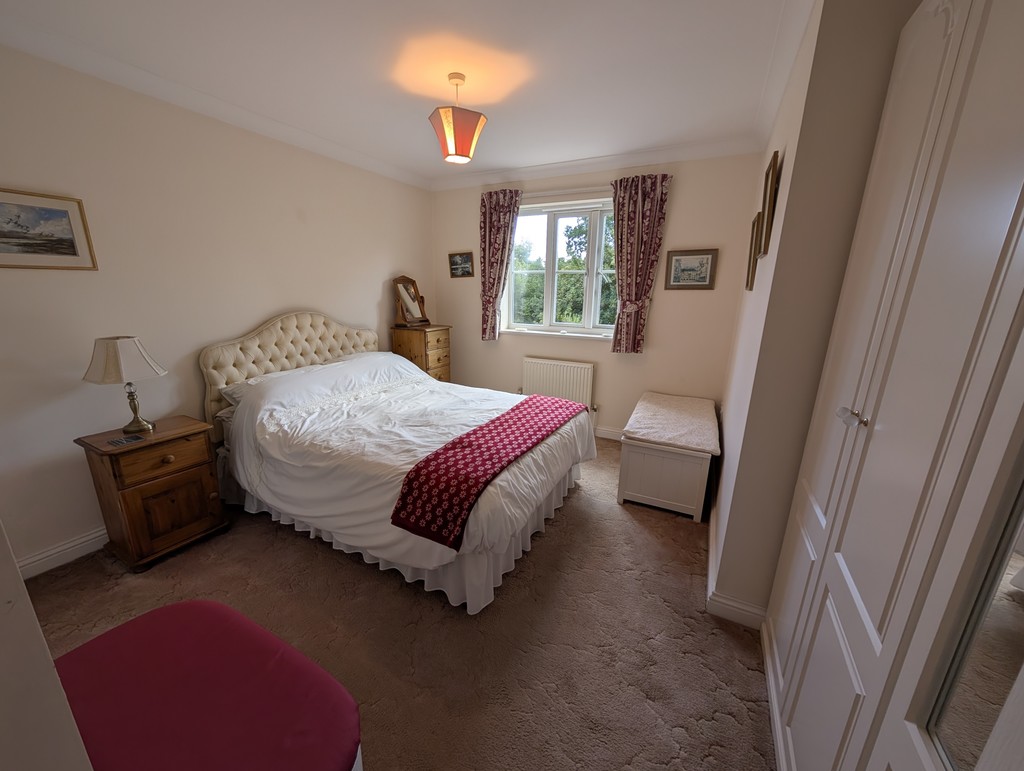 Upstairs, the first-floor landing gives access to four generous bedrooms. The principal bedroom enjoys views of the woodland opposite and is complemented by its own en-suite shower room. Two further double bedrooms, along with a versatile fourth bedroom/study, are served by the family bathroom.