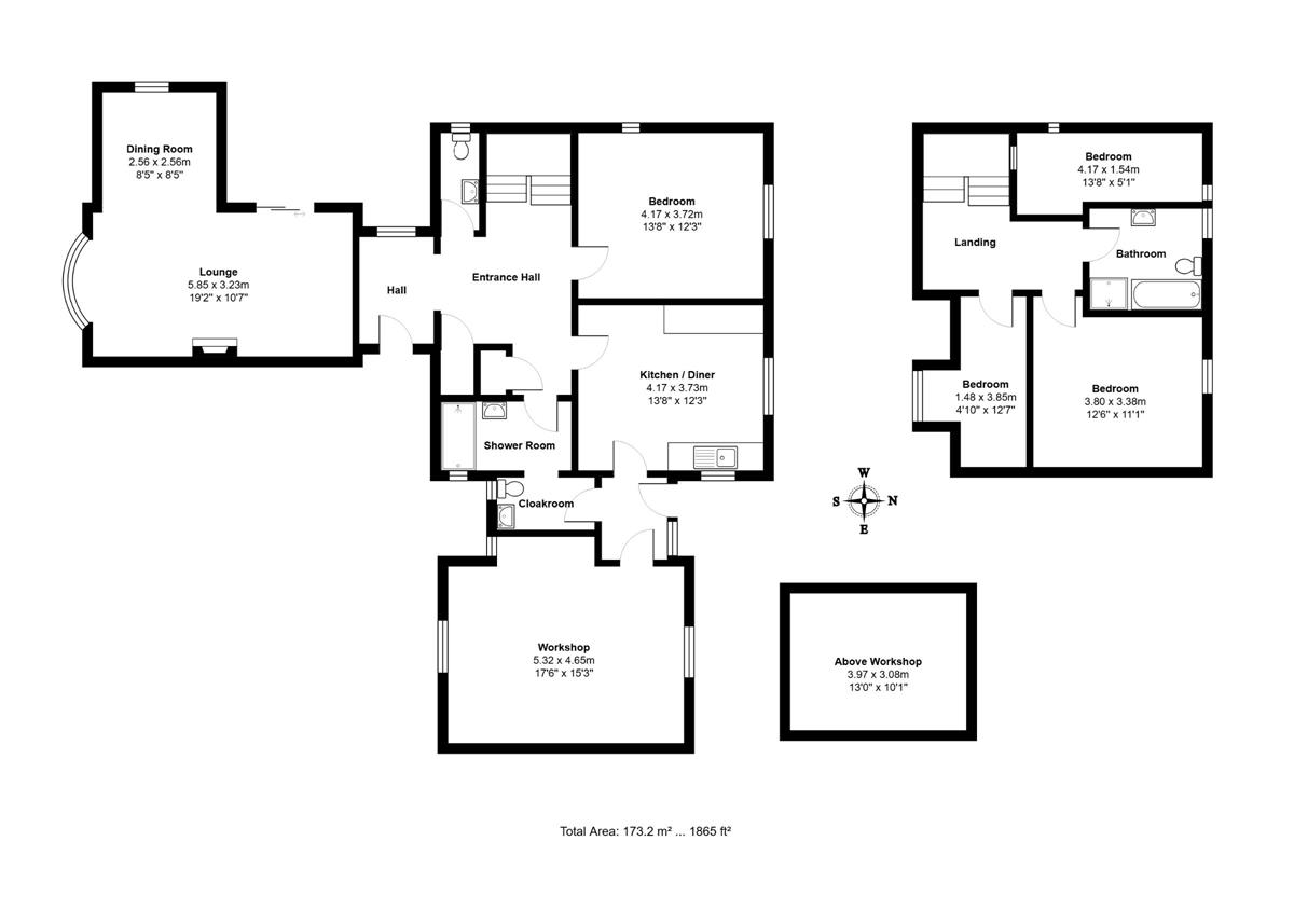 Shower Room: 9'5" x 5'1" (2.87m x 1.55m) + 7'2" x 3'10"