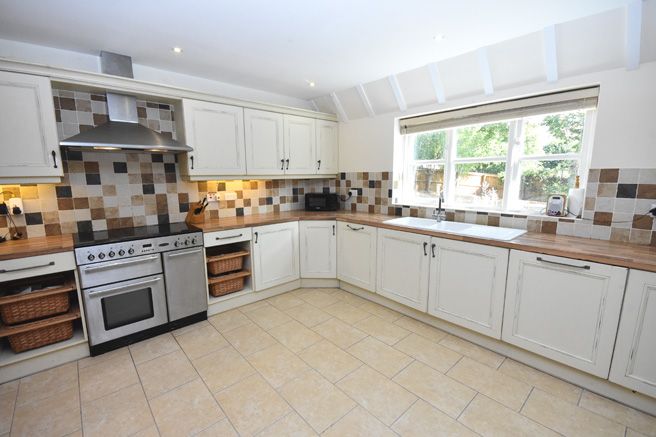 Fitted with a range of solid beech high and low level units, cupboards and drawers under roll edge work surfaces,