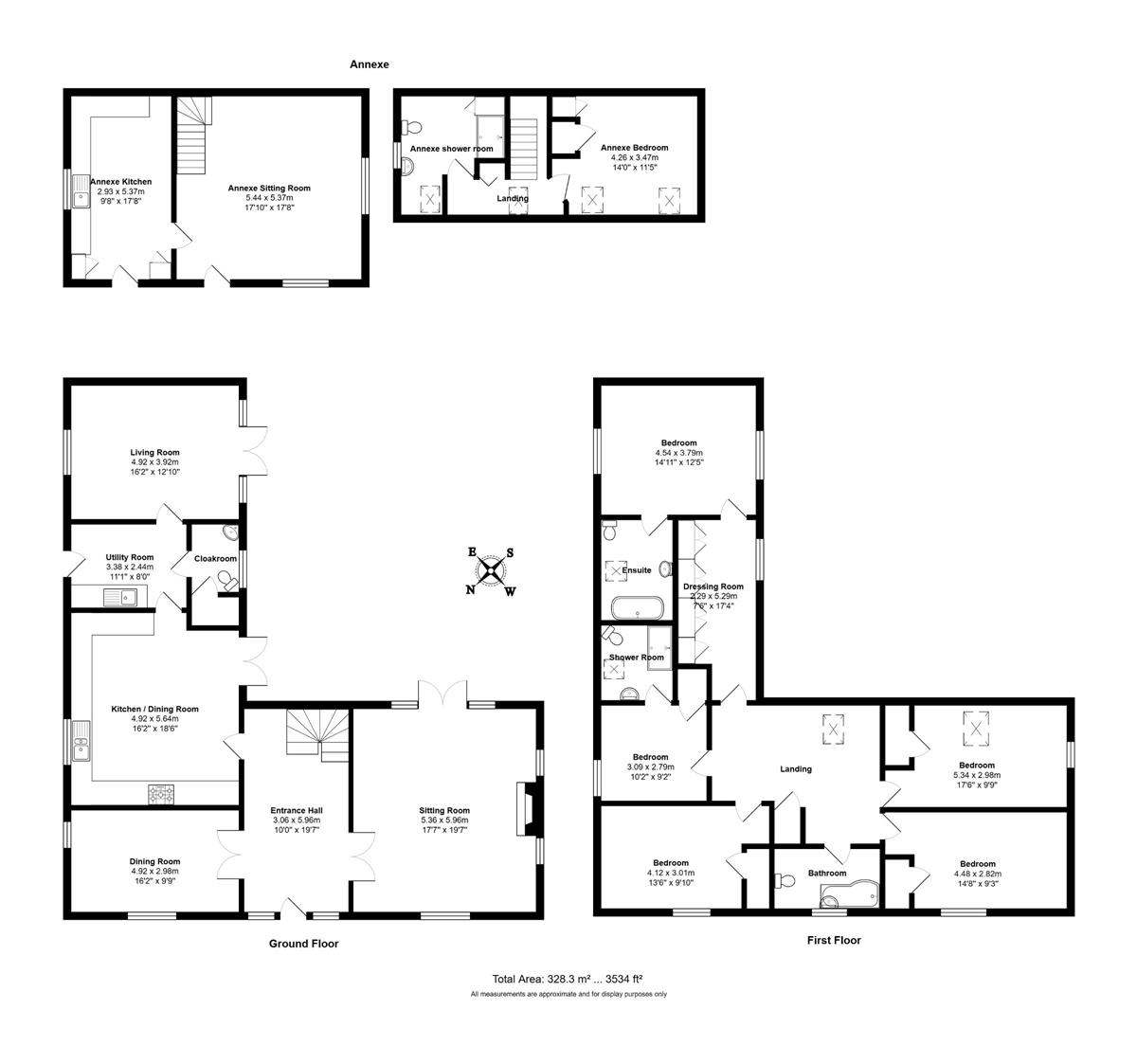 Upstairs the main bedroom suite offers its own bathroom and dressing room, with guest bedroom/two also having an ensuite shower room. Situated in the grounds of the house is a substantial one bedroom annexe with fitted kitchen, spacious sitting room with bedroom and shower room on the first floor. Both properties have oil fired heating with the main house having zoned under floor heating throughout the ground floor.
