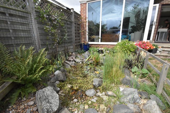 Situated behind the house, is a raised paved patio area with pergola over and secluded paved seating area. The garden offers a hot tub point with timber cover and an ornamental pond. Laid to lawn with a variety of shrub and flower borders, enclosed on all sides the garden offers a high degree of seclusion. Outside tap and air source heat pump. Garage enbloc.