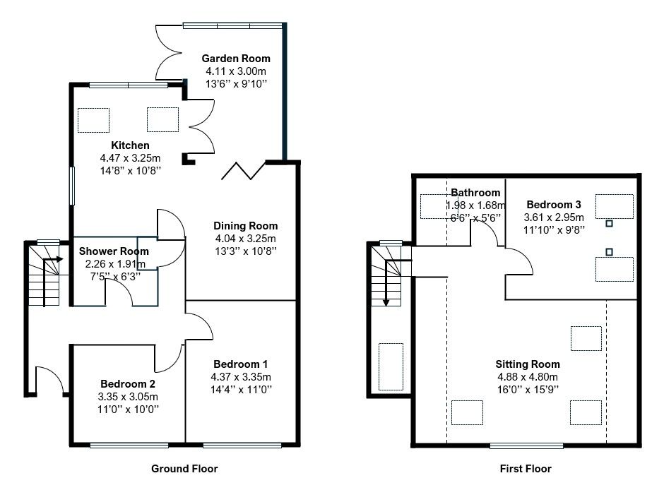 Garden Room: 13'6" x 9'10" (4.11m x 3m)