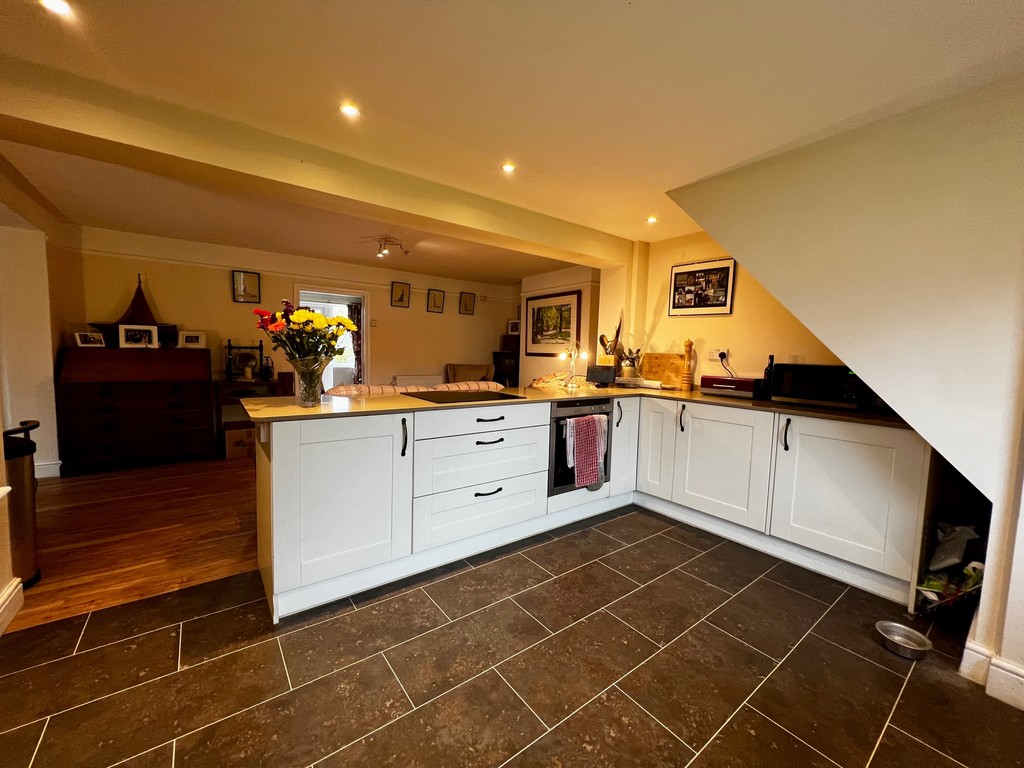 Kitchen - low level units, induction hob, electric oven, fitted fridge, freezer, dishwasher, sink, space for washing machine, window to rear and side aspect
