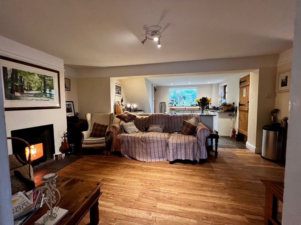 Lounge/Diner - wooden flooring, two wall radiators, working wood burner, window to side aspect