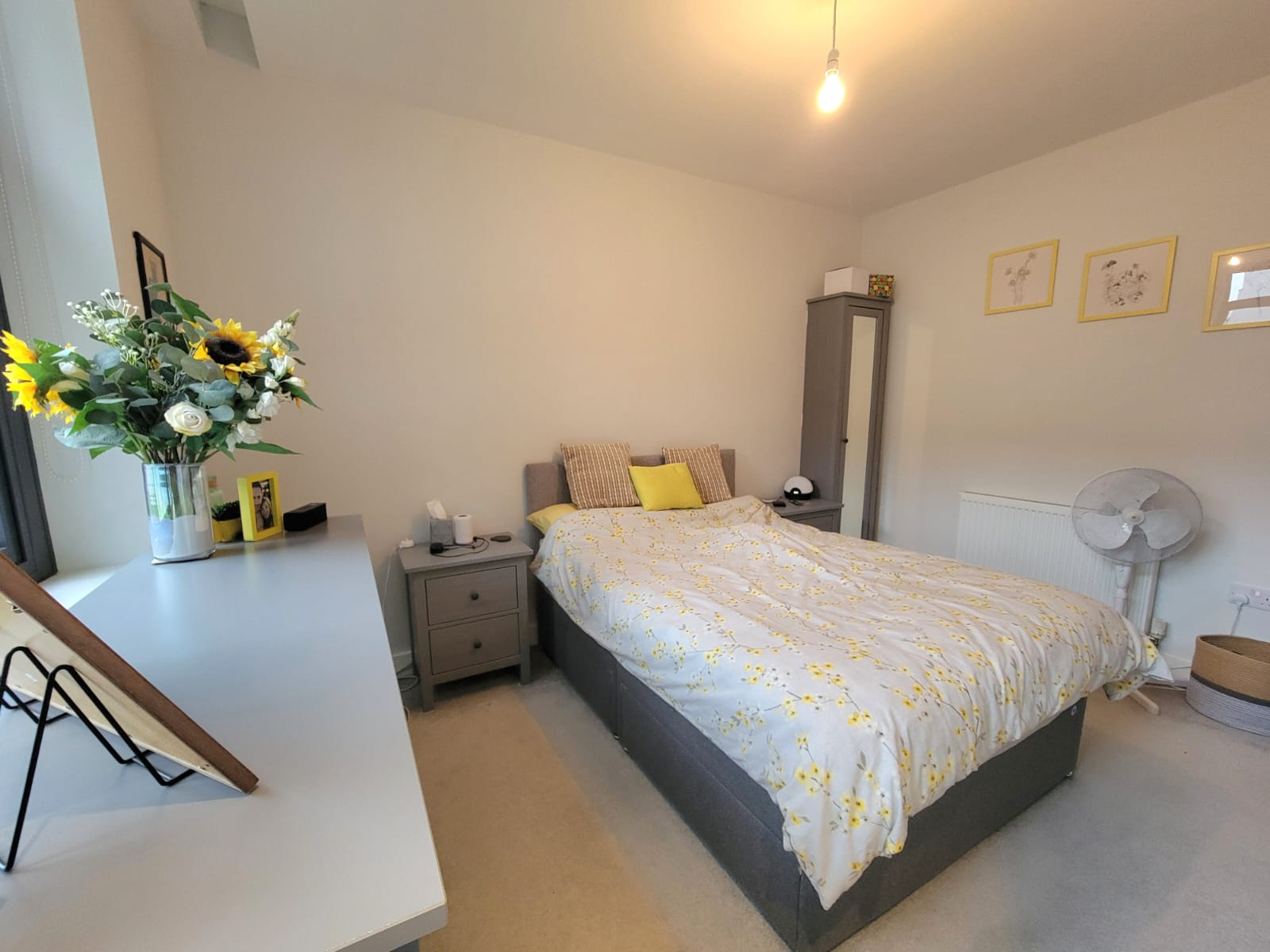 13' 9" x 11' 3" (4.19m x 3.43m) Radiator, wardrobe alcove, spotlights, large 9'6" wide double glazed window providing good amounts of natural light.