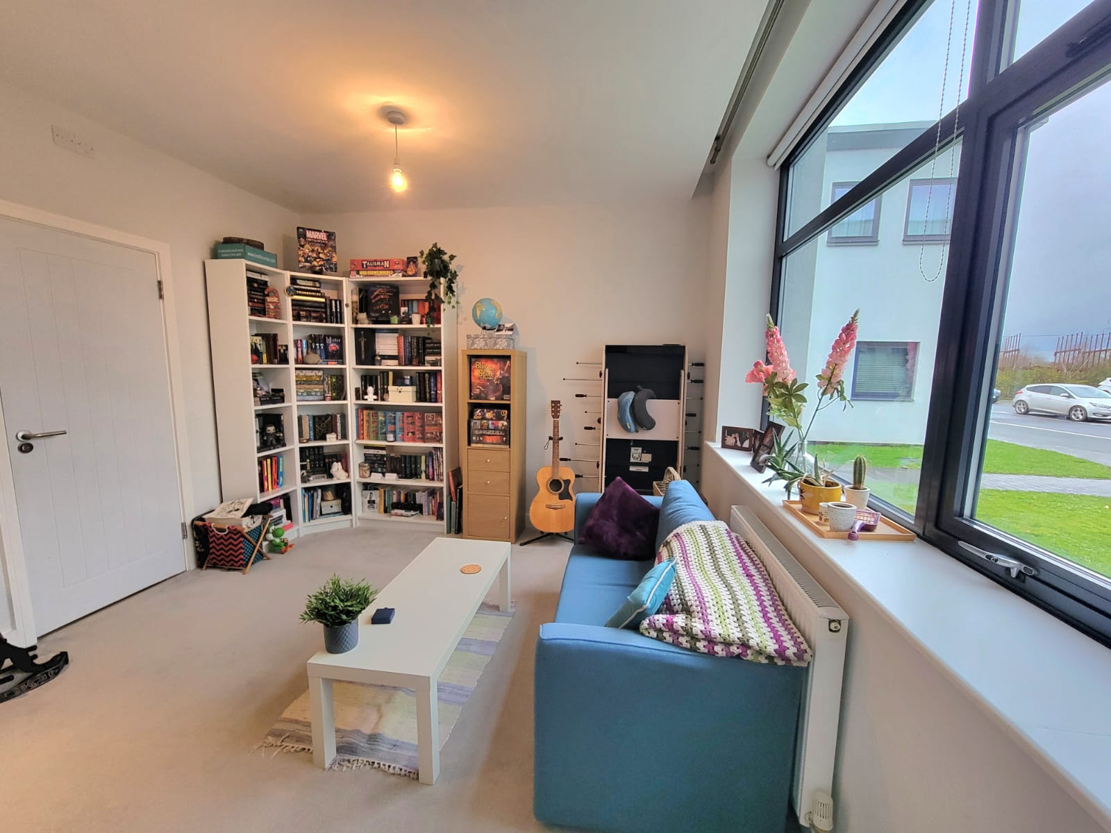 13' 4" x 10' 2" (4.06m x 3.1m) At the longest points. 8'6" high ceiling, radiator, inset spotlights, ash grey wood effect flooring, radiator, smoke alarm.