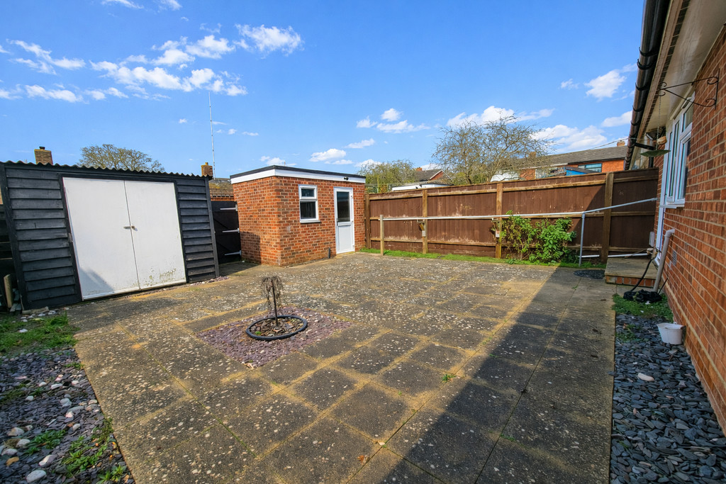 OUTSIDE: The bungalow is set nicely back from the road with lawn to the front. Pedestrian access to the rear leads to the low maintenance rear garden, predominately paved with slate chipping border, fenced boundaries, detached brick built store with half glazed PVC door and PVC window, further timber garden shed with double doors, gated and pedestrian access leads to a parking area close by.