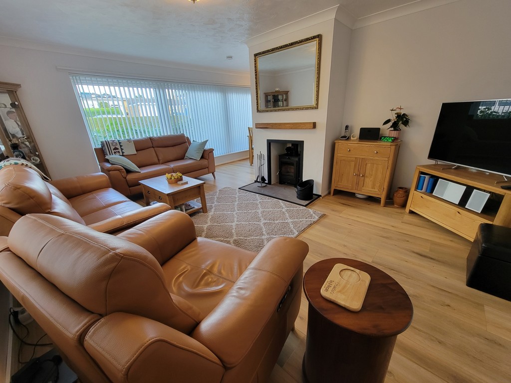 This deceptively spacious bungalow offers good room sizes throughout with well planned useable accommodation including a spacious reception hall leading to an impressive L shaped sitting and dining room with central feature fireplace with wood burner and large picture window to the front aspect. Access leads to the kitchen/breakfast room with re-fitted units. The bedrooms are located predominately to the rear with sunny aspect and views over the garden. The bungalow benefits from full central heating to radiators, PVC double glazing and solar panels. A particular feature is the generous un-overlooked rear garden. Internal viewing is essential.
