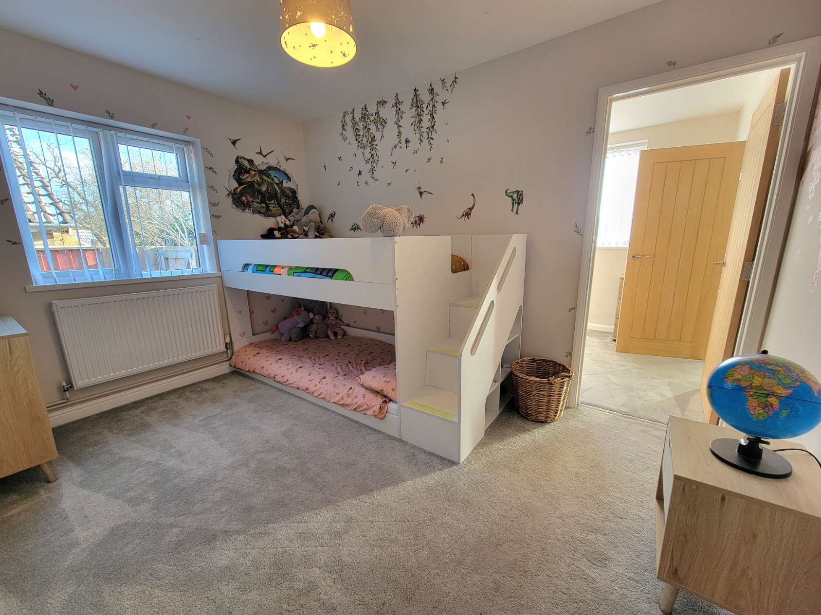 Radiator, solid oak door, space for wardrobes, PVC double glazed window to the side aspect.