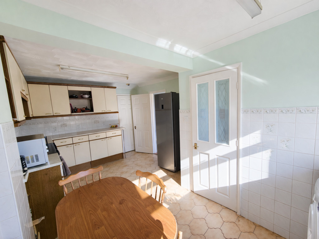 KITCHEN/DINNG ROOM: 18' 8" x 11' 5 " (5.69m x 3.48m) Fitted with a good range of base and wall mounted units, fitted worktops inset one and a half bowl sink unit with mixer tap, tiled splashbacks, cooker space, space and plumbing for washing machine, space for fridge/freezer, radiator, PVC double glazed window to the rear aspect.