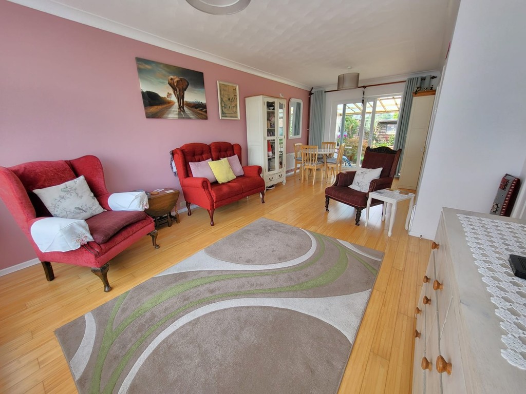 SITTING & DINING ROOM: 22' 9" x 12' 5" (6.93m x 3.78m) Of L Shaped design. Two radiators, tv point, PVC French doors opening to the rear garden, large PVC double glazed window to the front aspect.