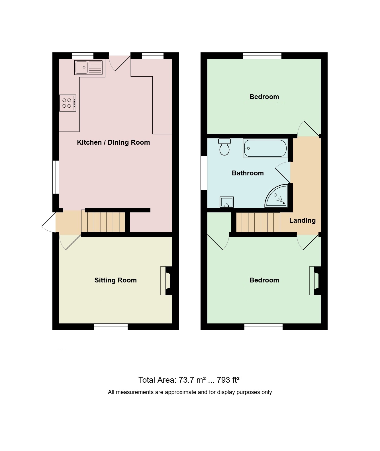 ENTRANCE LOBBY: Half glazed wood effect entrance door with canopy fitted over, staircase to the first floor, doors to the kitchen and sitting room,