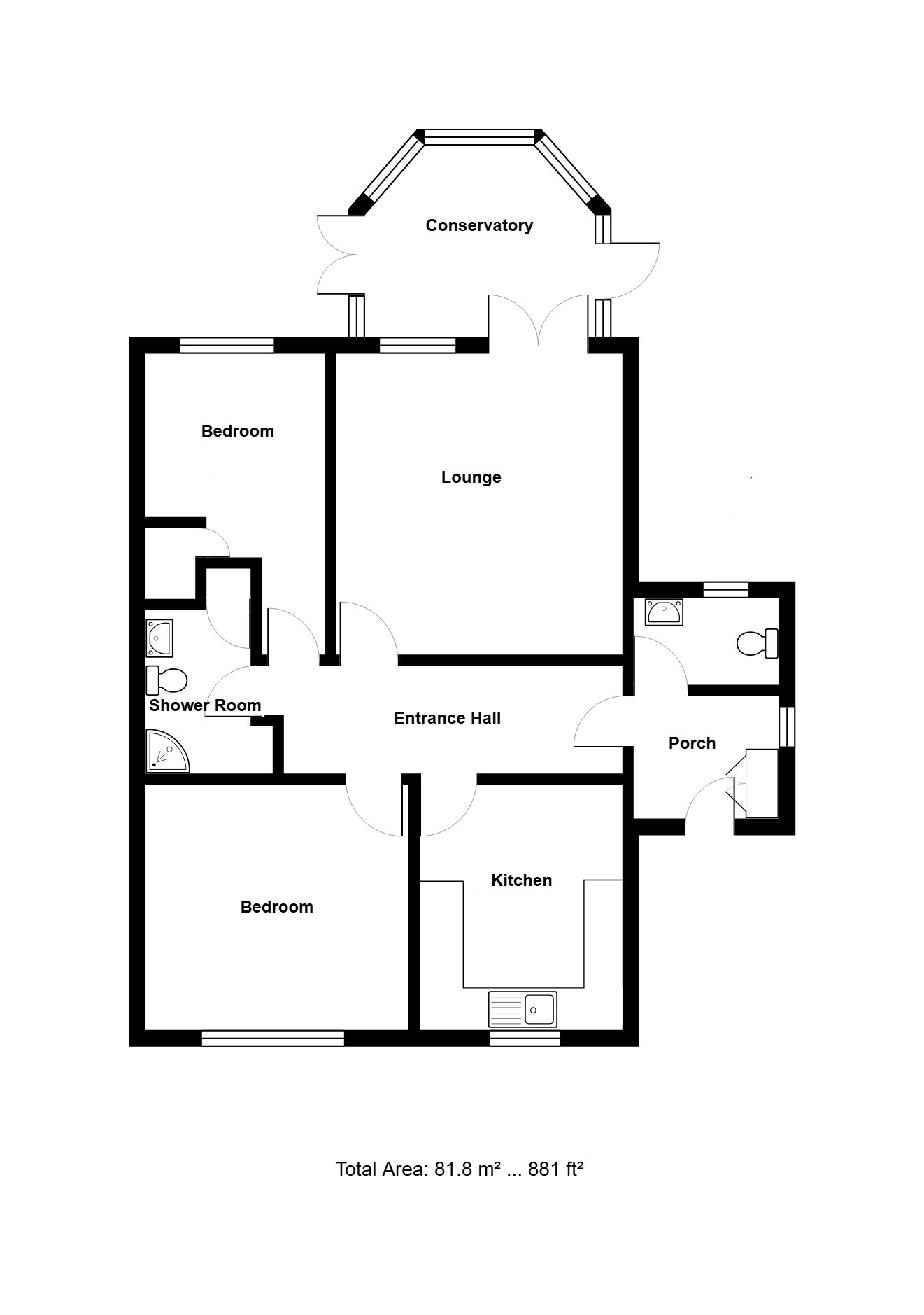 This individually built village bungalow was originally constructed by a local builder. Presented in excellent condition throughout having been well cared for and improved, ready for immediate occupation with no onward chain. Features include an inviting entrance porch with built-in cupboards leading to an impressive reception hall which in turn gives access to all rooms within the bungalow. The kitchen/breakfast room is located to the front with views over the village, well fitted with a good range of solid wood units. The sitting room is located to the rear with feature fireplace and French doors opening to a good quality hexagonal shaped conservatory which in turn overlooks the garden. There are two double bedrooms with the master bedroom having an excellent range of built-in bedroom furniture, there is also a contemporary shower room to compliment the accommodation. Externally a generous block paved drive provides parking for at least three/four cars and gives access to a single garage with power and light. Internal viewing is highly recommended.