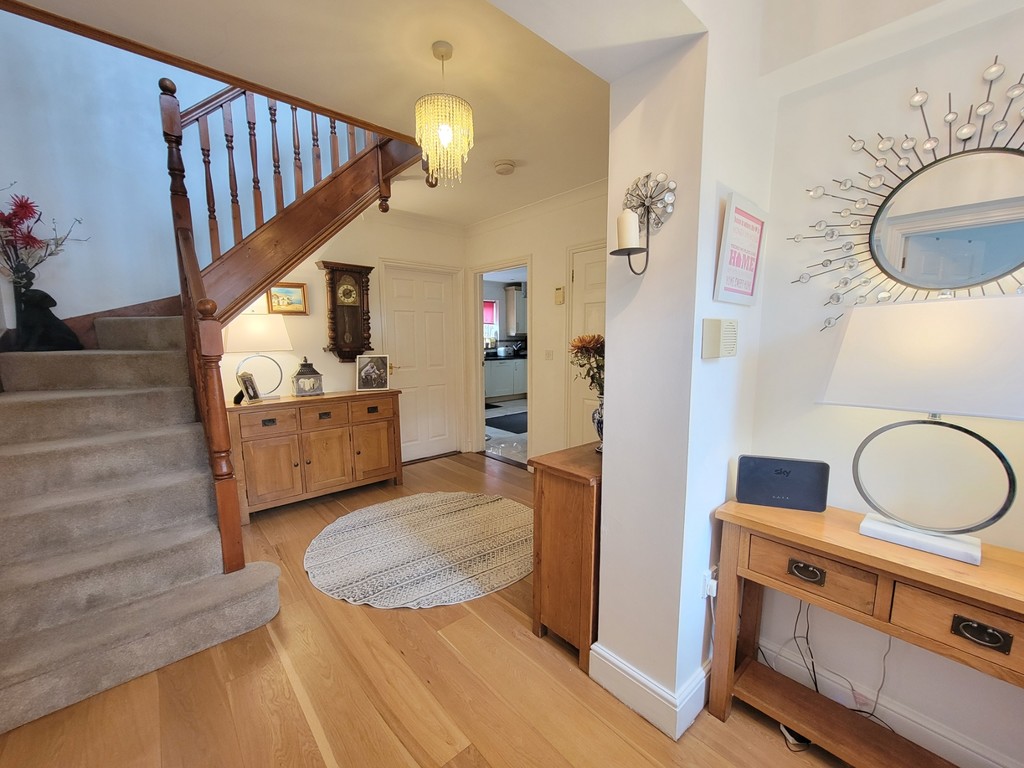 This well built impressive family house is one of just three properties forming a small cul-de-sac, walking distance to the village centre. There are four reception rooms and the benefit of a good size kitchen/breakfast room, features of note include a spacious reception hall and galleried landing. The bedrooms are all of good proportions with the master suite having a superb en-suite bathroom and dressing room. There are three further double bedrooms on the first floor along with second en-suite and family bathroom. A lengthy drive provides ample off road parking and gives access to the double garage. To the rear of the house there is a generous landscaped garden which extends to a large side terrace. Viewing is essential to appreciate to size of accommodation.
